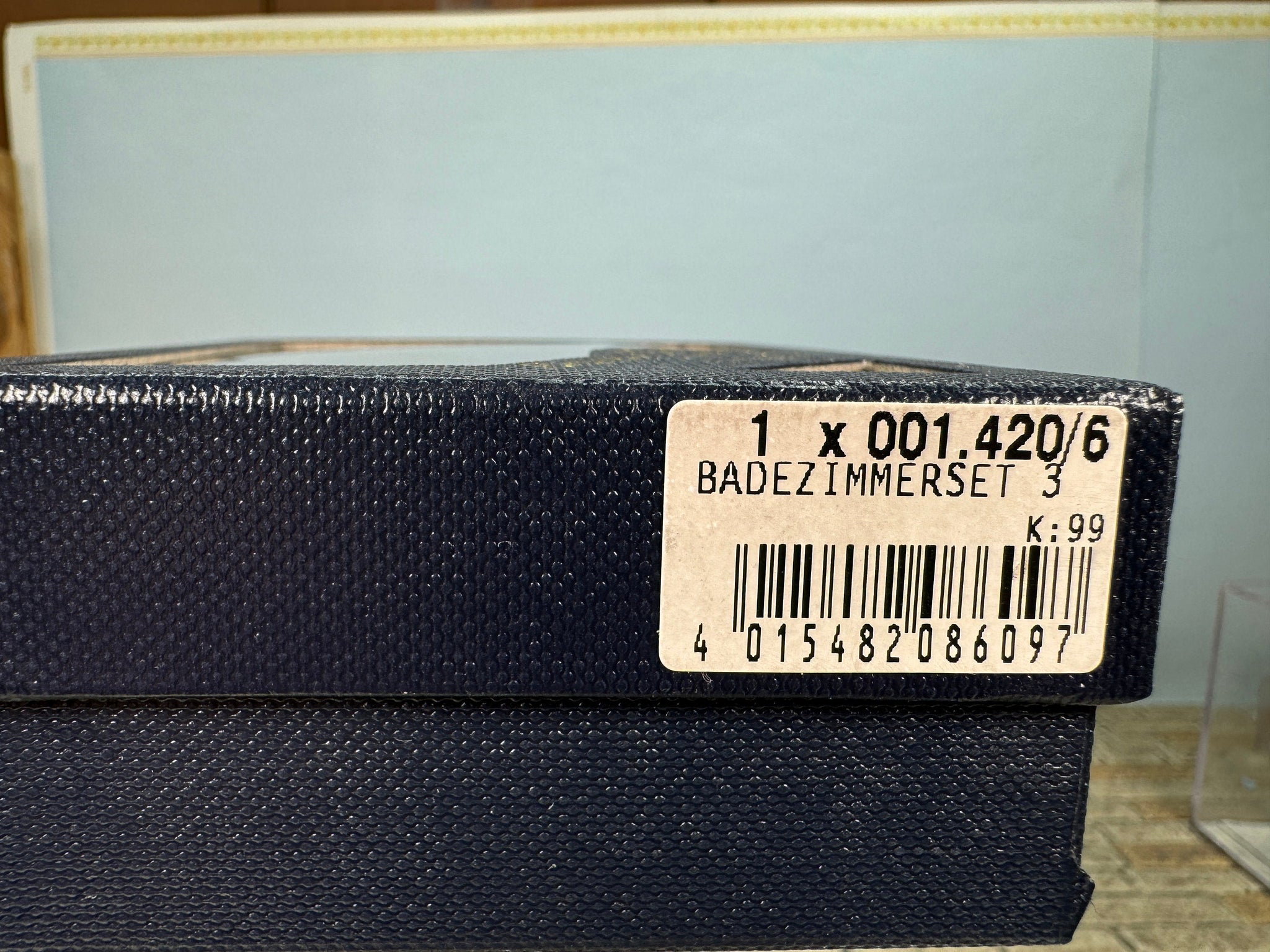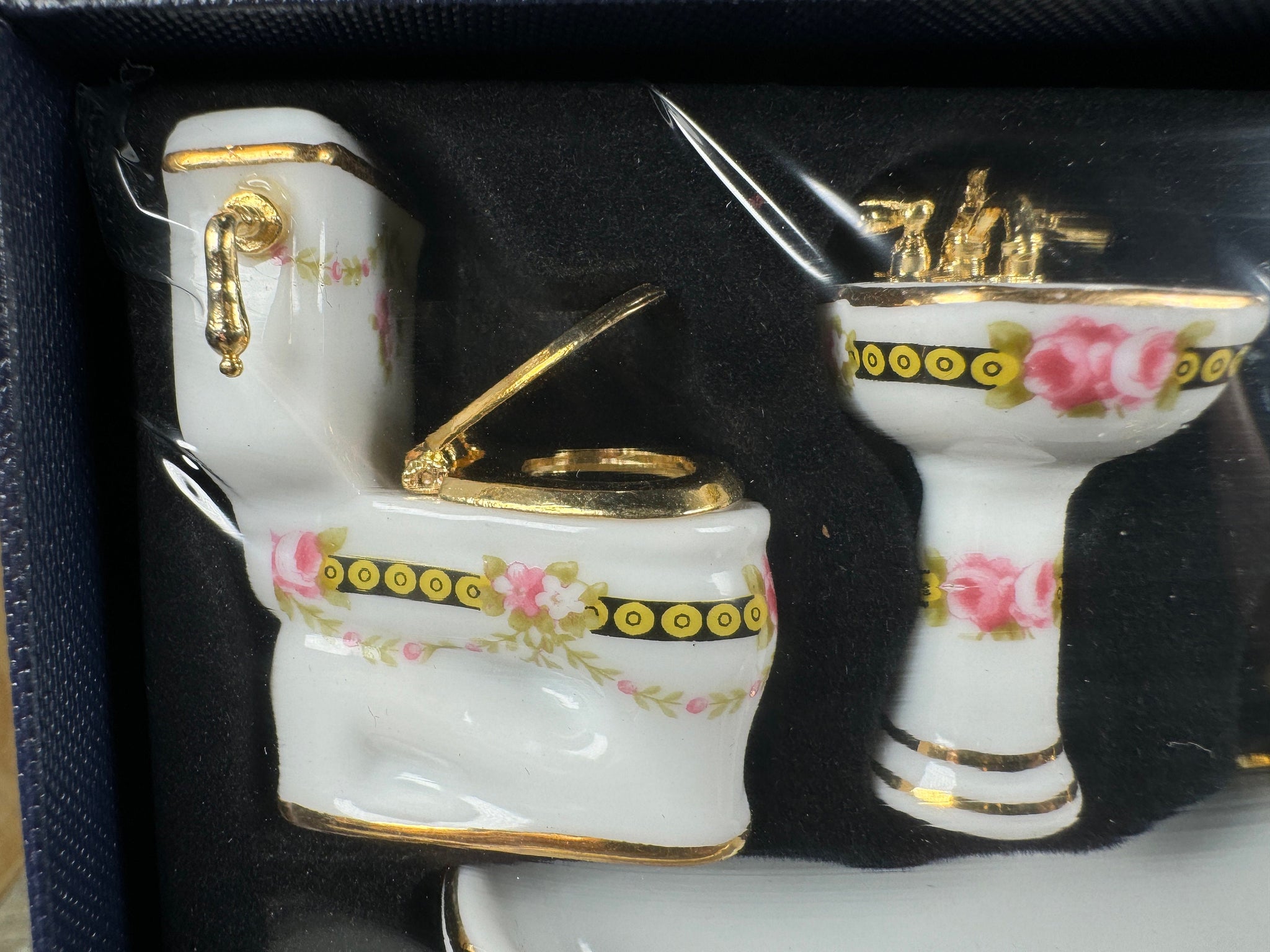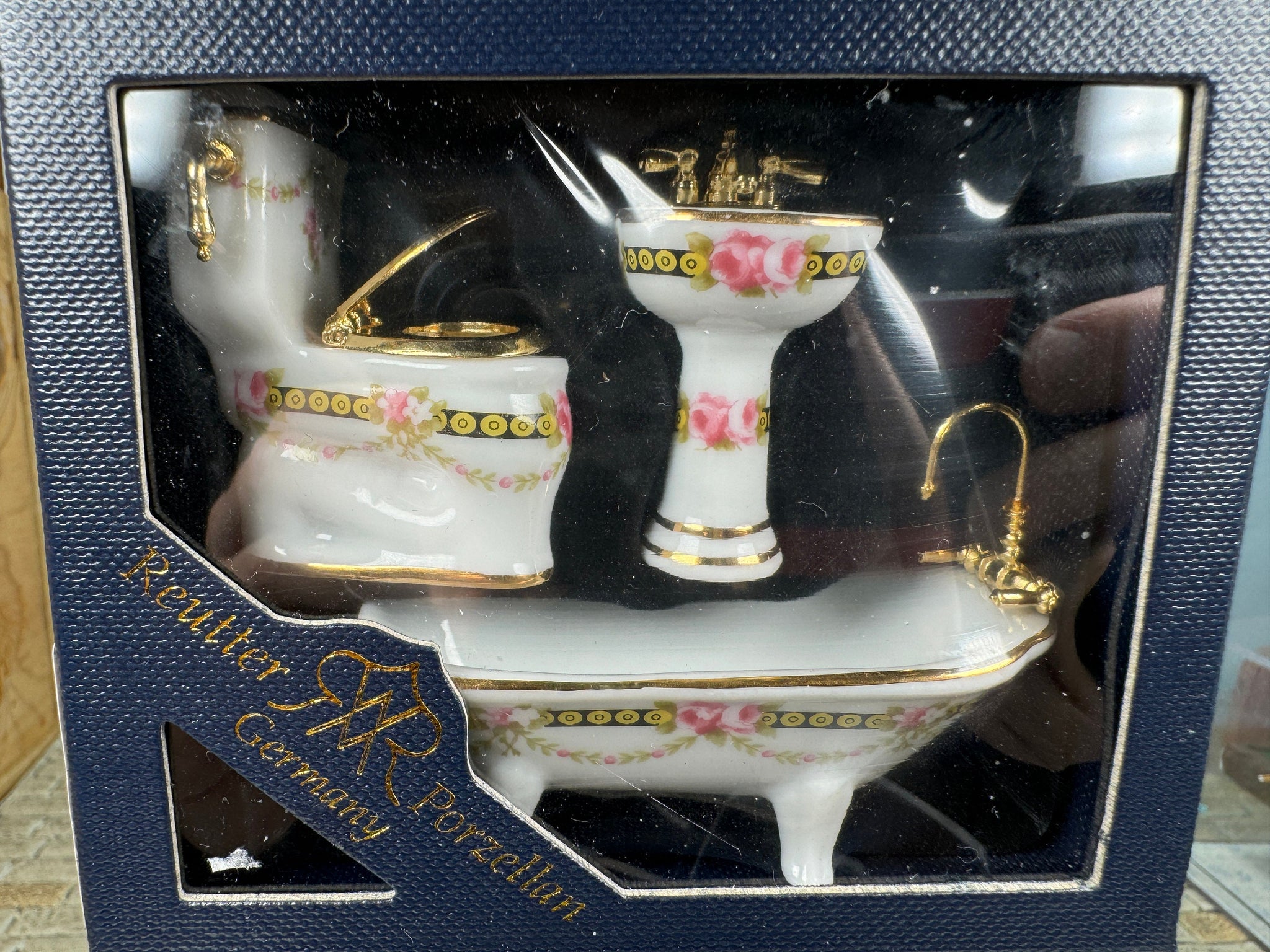 Dollhouse Miniature ~ Half Scale Reutter Porcelain Germany 3 Piece Rose Gold Bathroom Set New In Box