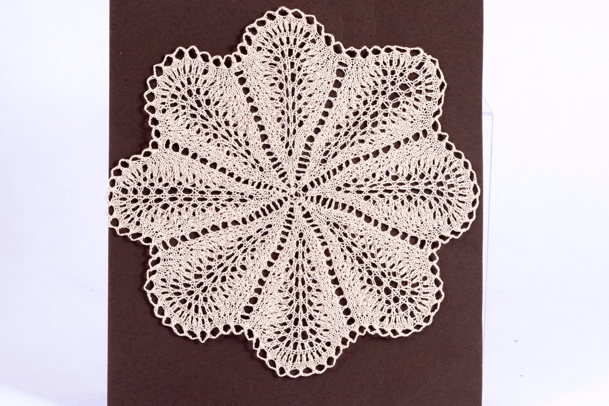 This is a wonderful hand knitted lace tablecloth. In a floral shape, this is such a beautiful piece. Made in the UK by Margaret Sitch. This is from Kraft collection.