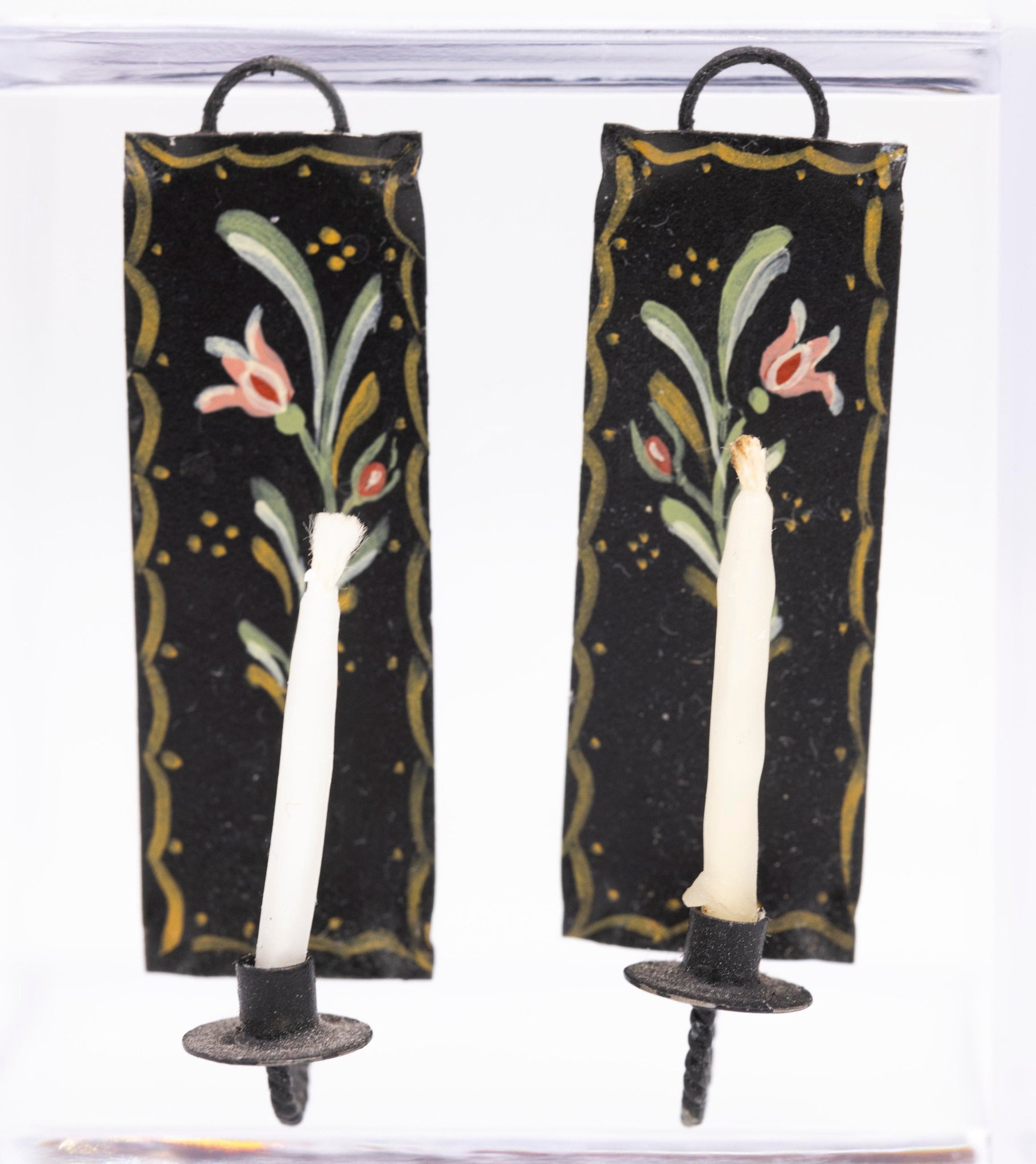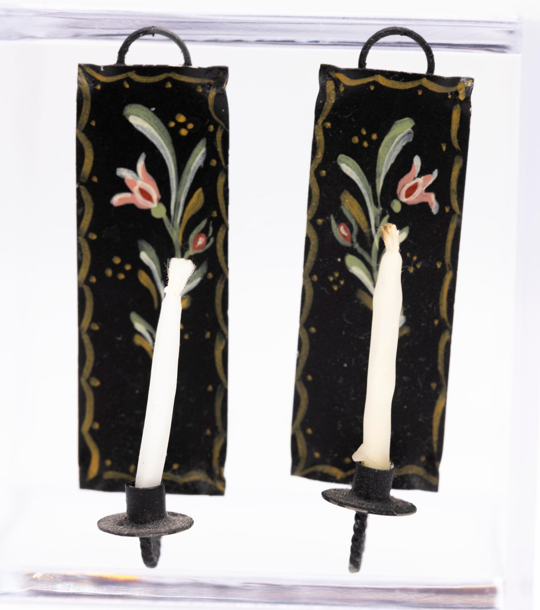 Dollhouse Miniature ~ Hand Painted Black Metal Pair of Candle Sconces - Studio B