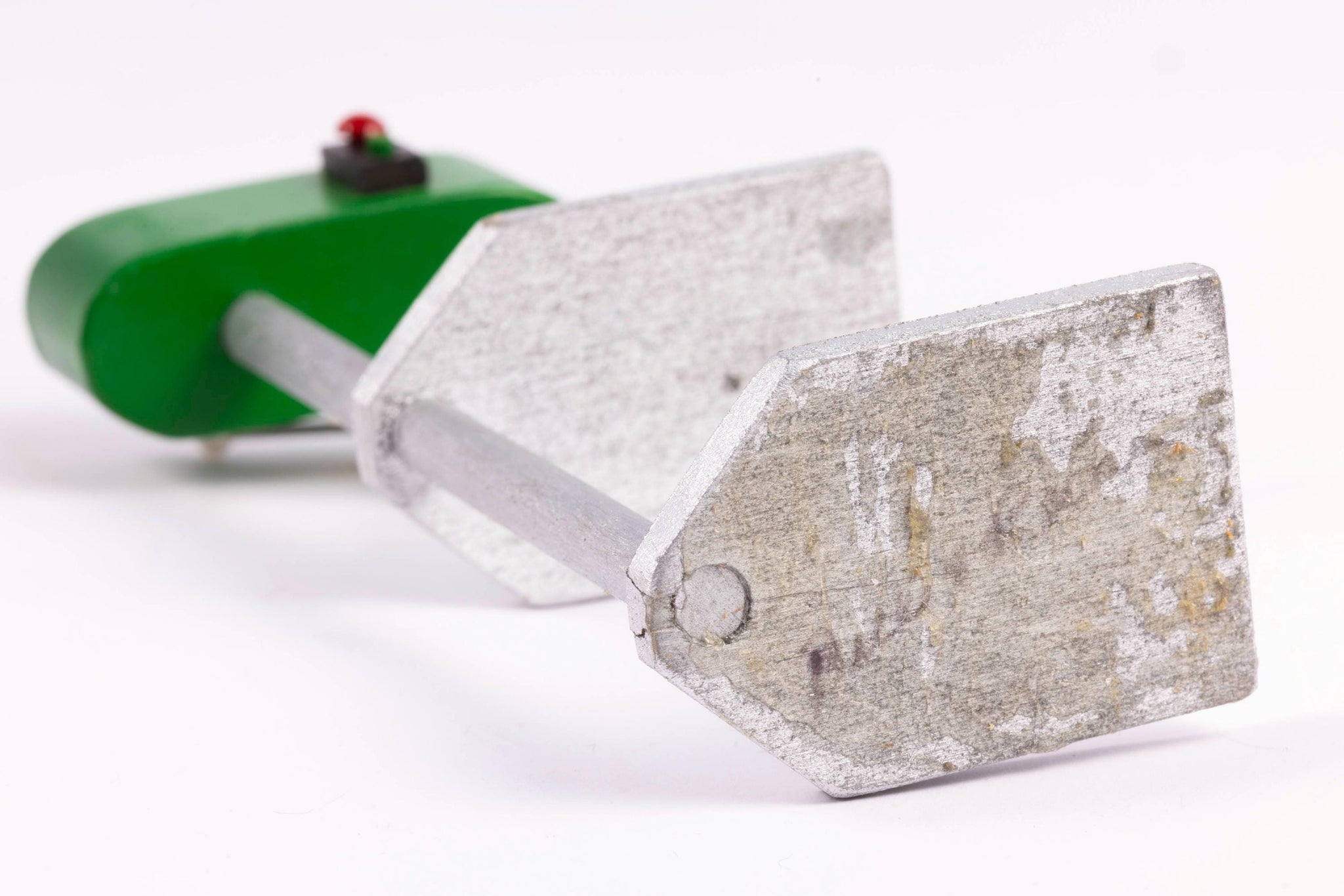 This is a handmade drill tool by Bill and Leona. Made of wood and painted.