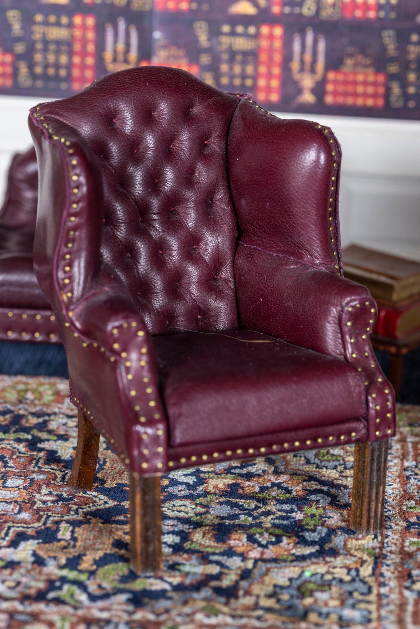 Dollhouse Miniature ~ Handmade Leather Wing Back Chair by Joan Ince - Lee Lefkowitz
