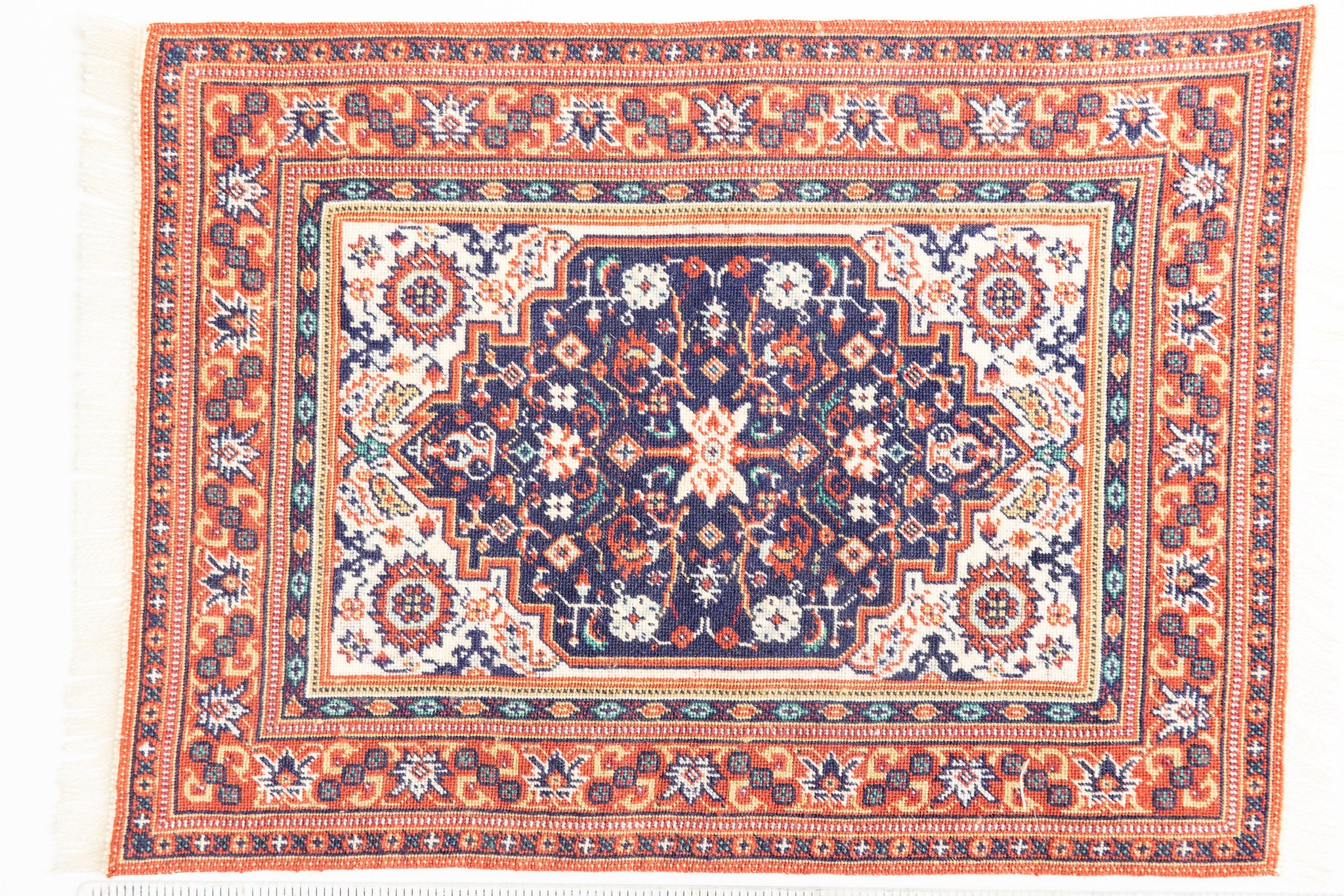 Beautiful petit point rug with black and dark oranges throughout with white. Note, this is photographed lighter than the actual rug, darker in person. Beautiful work by Ursula Sauerberg. She did needlepoint/petit point every day of her life. Just beautiful.