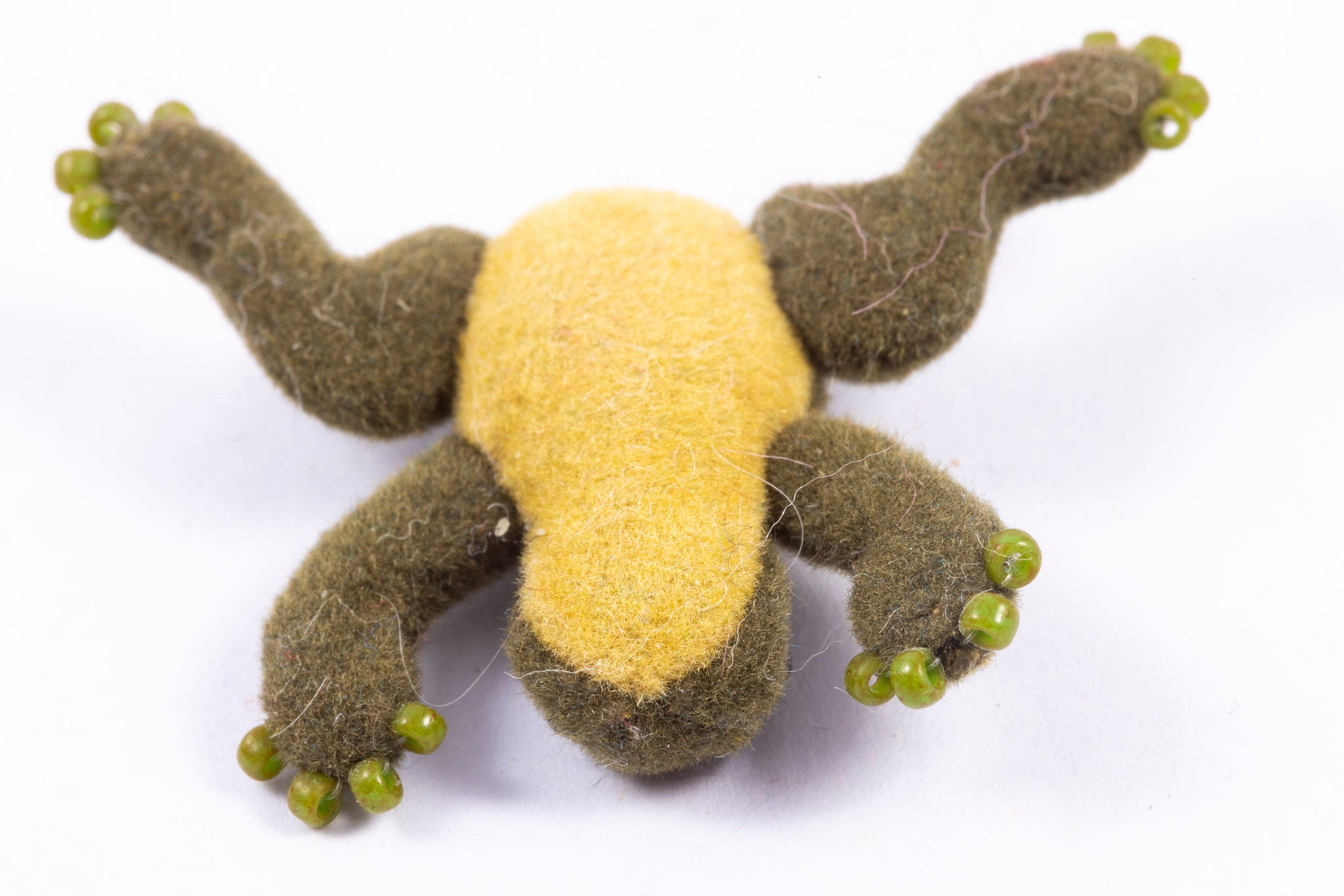 Dollhouse Miniature ~ Handmade Stuffed Animal Frog with Legs Spread Out- From Ursula Sauerberg Estate