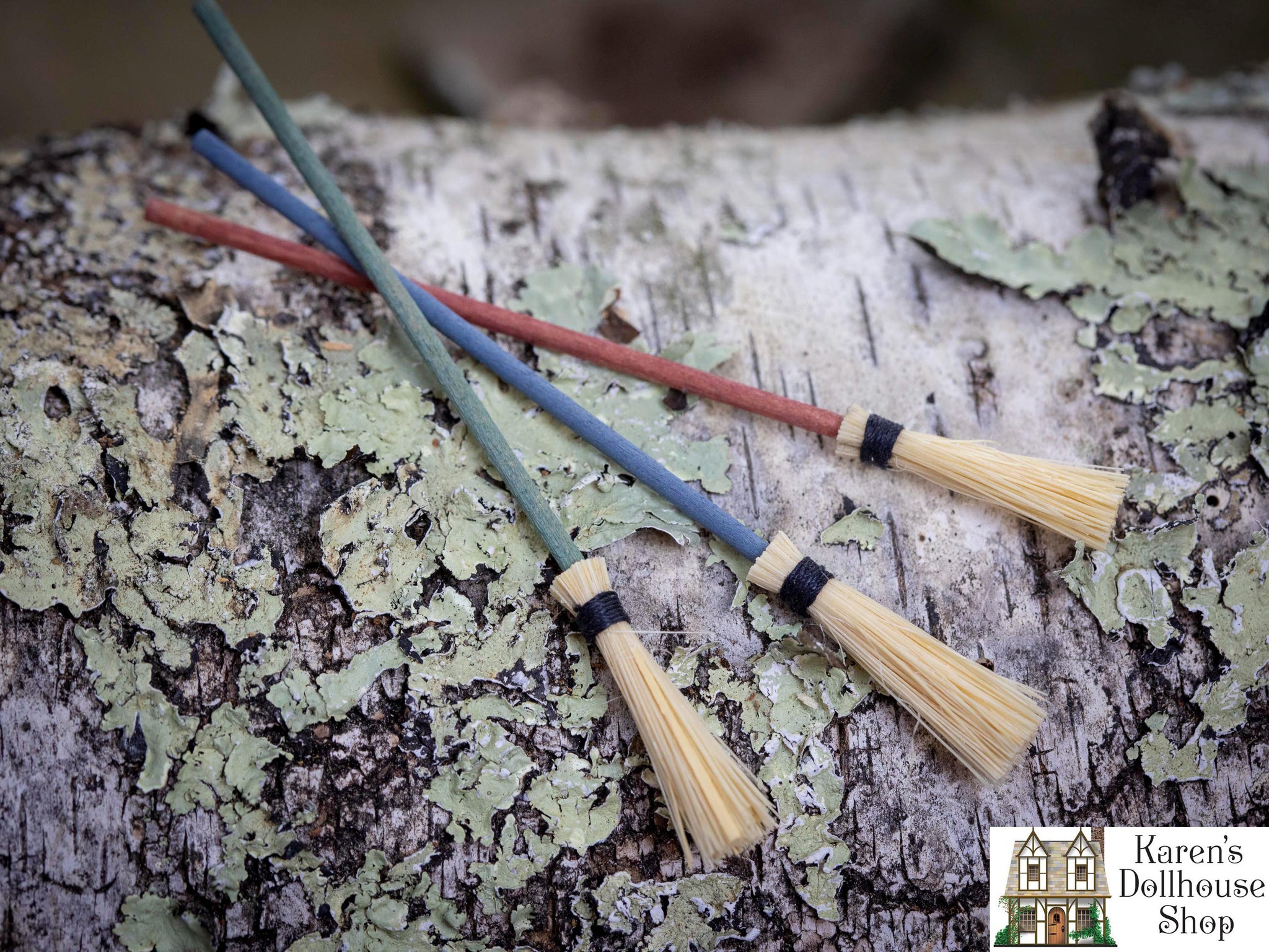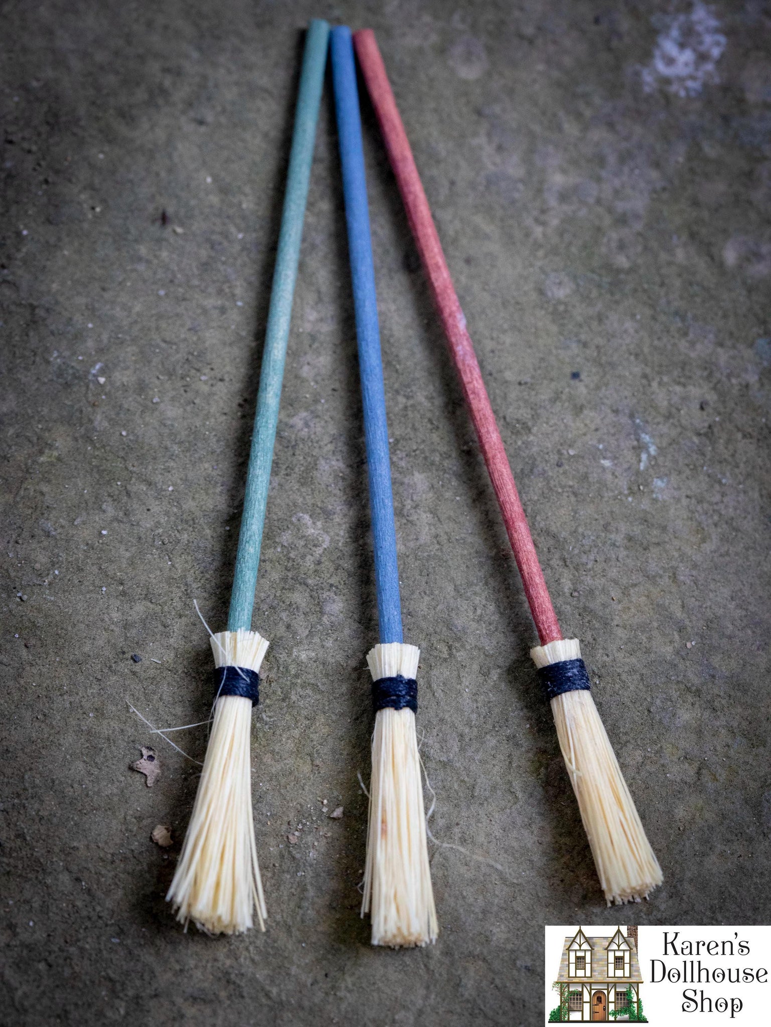 Dollhouse Miniature ~ IGMA Artist Al Chandronnait Wooden Broom with Blue, Green or Reddish Handle