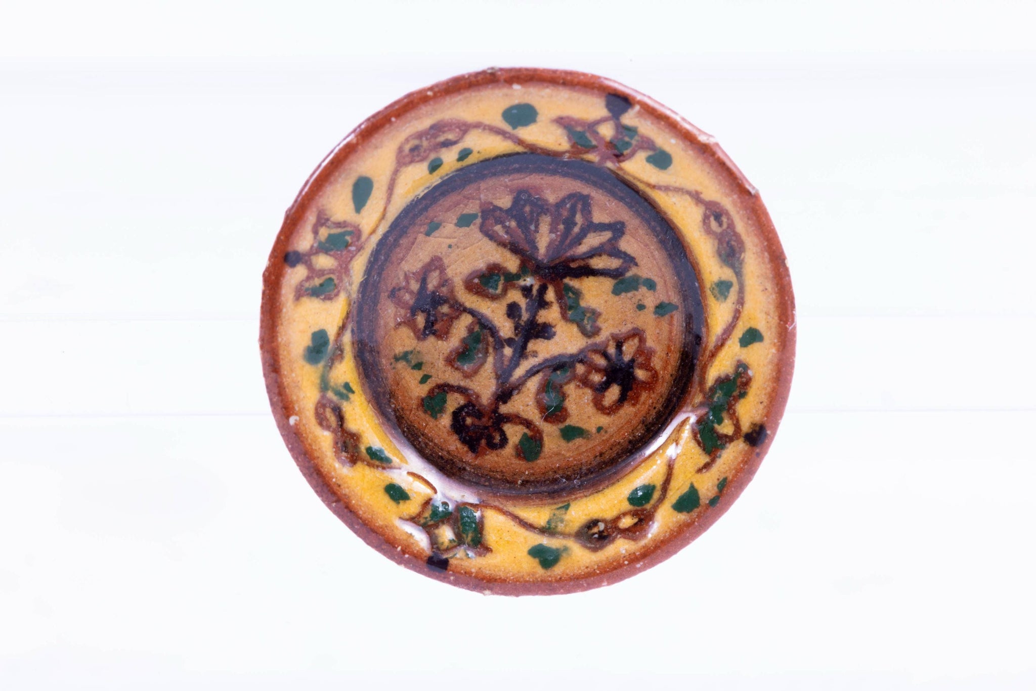 Dollhouse Miniature ~ IGMA Jane Graber Redware Sgraffito Plate with Flower
