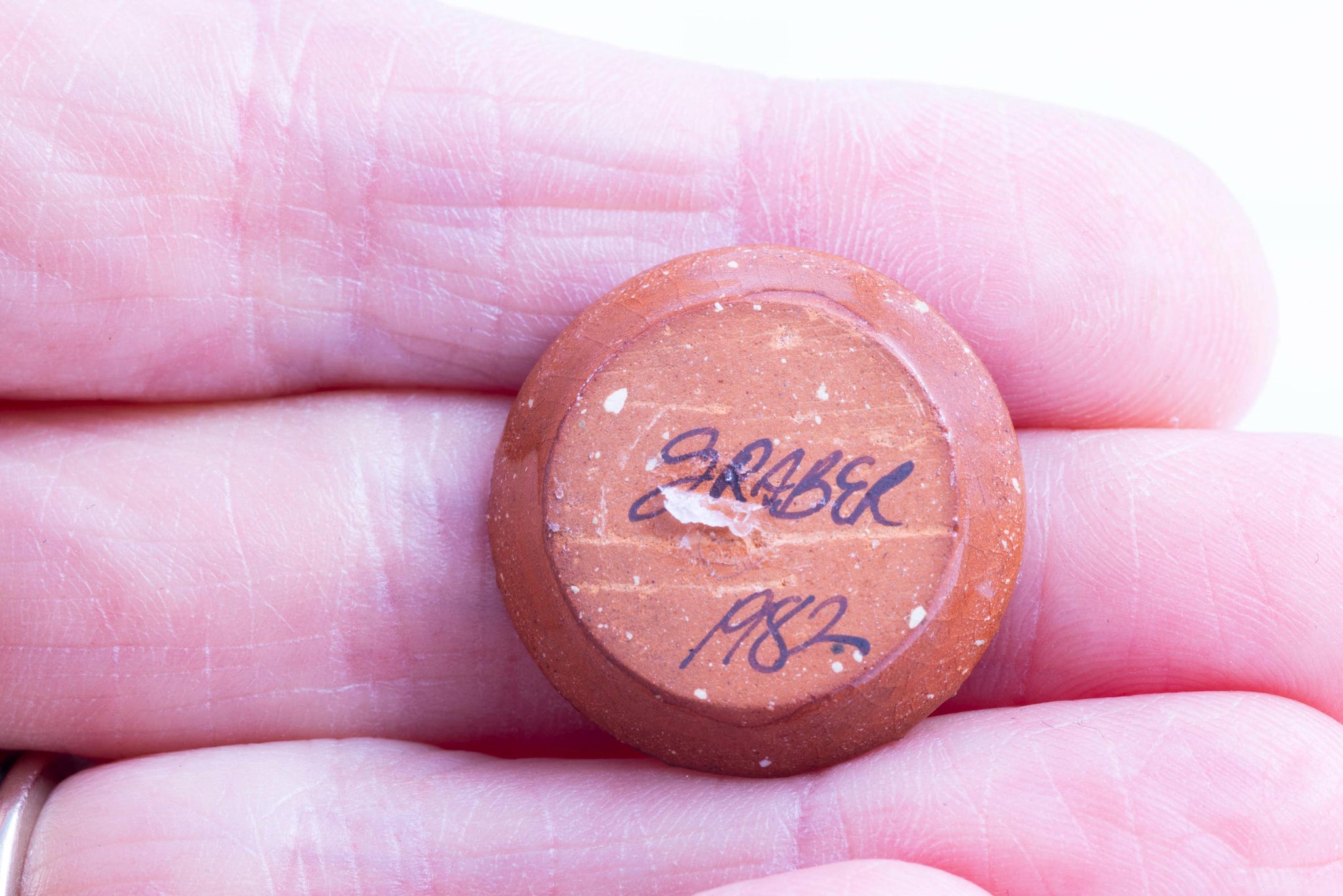 This is a wonderful Jane Graber, IGMA artist redware sgraffito plate. Floral design decorate this plate. Vintage. Approximately measuring: 7/8" diameter Margo estate