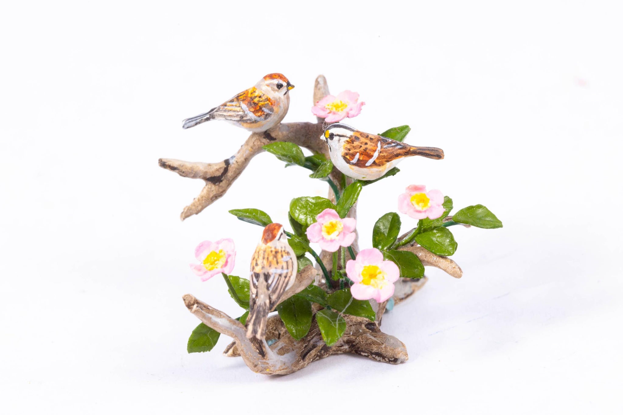 This is a wonderful hand made Mary McGrath trio of beautiful birds. There are flowers surrounding the branches. A great piece.