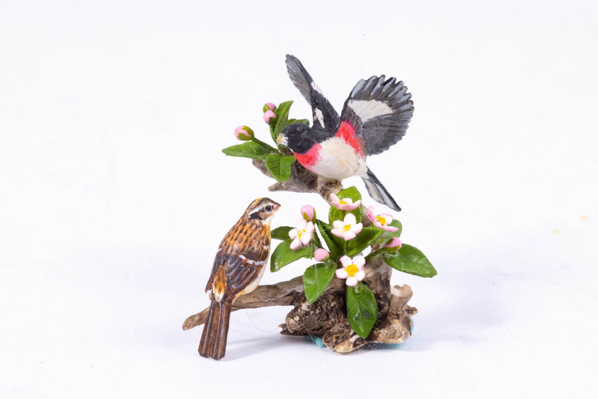 This is a wonderful hand made Mary McGrath set of two sculpted beautiful birds. There are flowers surrounding the branches. A great piece.