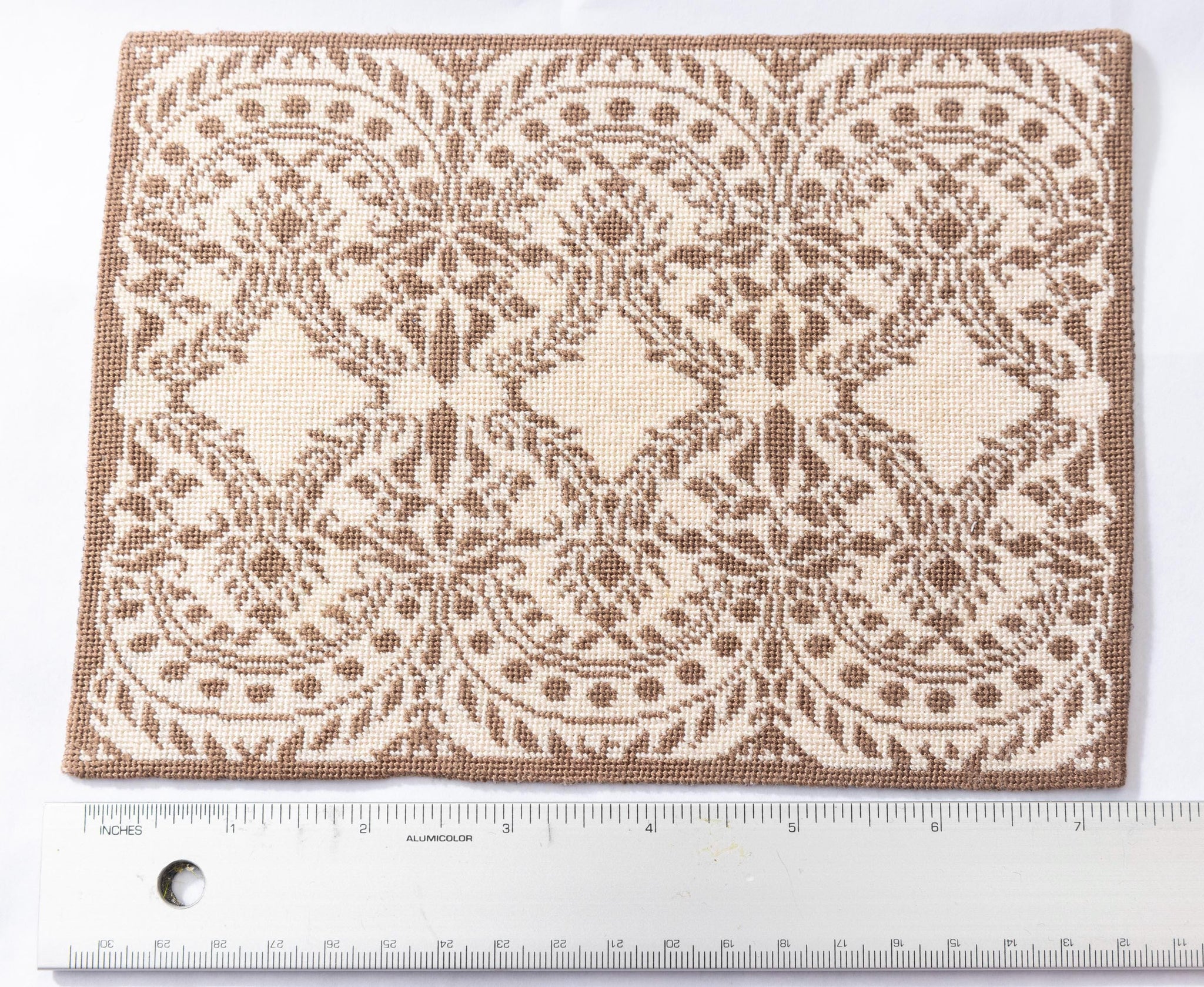 This is a beautiful handmade rug from a Janet Patacca, Stitches in Miniature kit. Well done, Damask, brown color.