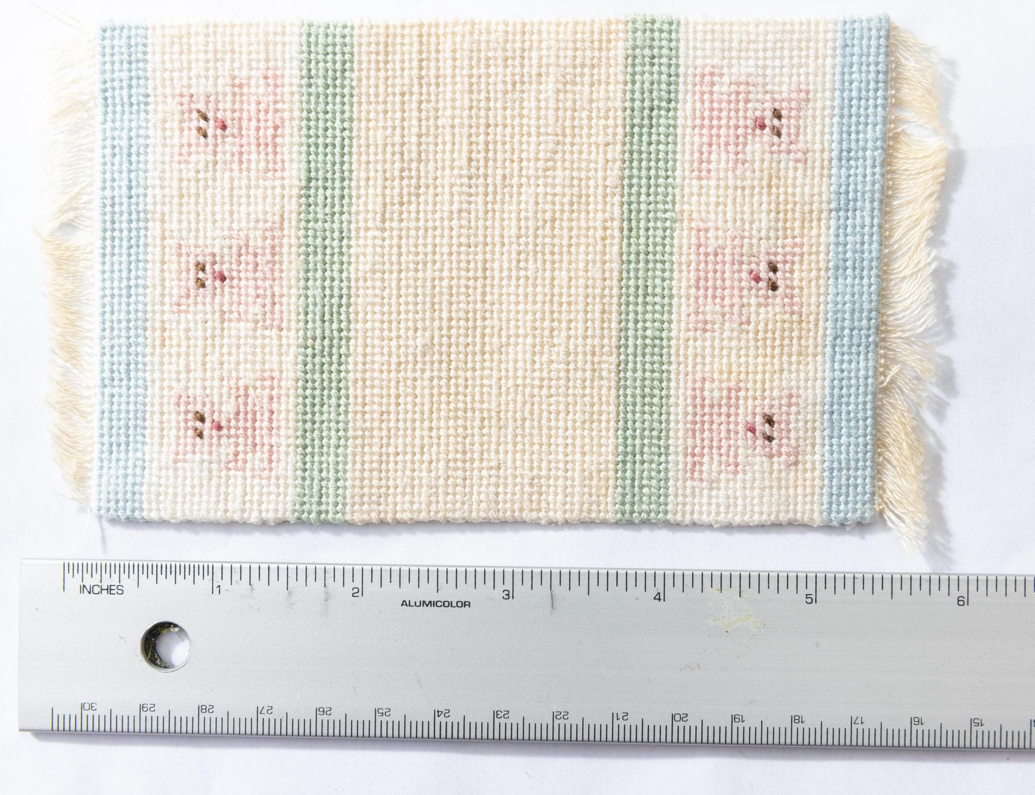 This is a beautiful handmade rug from a Janet Patacca, Stitches in Miniature kit. Well done, bears with fringe.