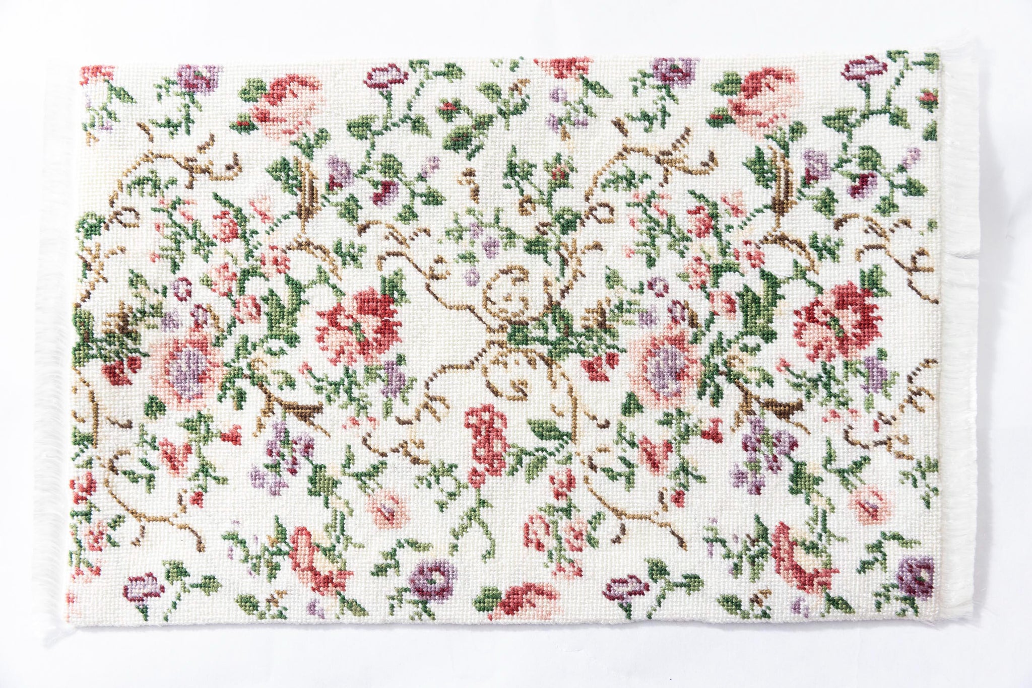 Dollhouse Miniature ~ Needlepoint Rug 6" x 9" Kelly Floral