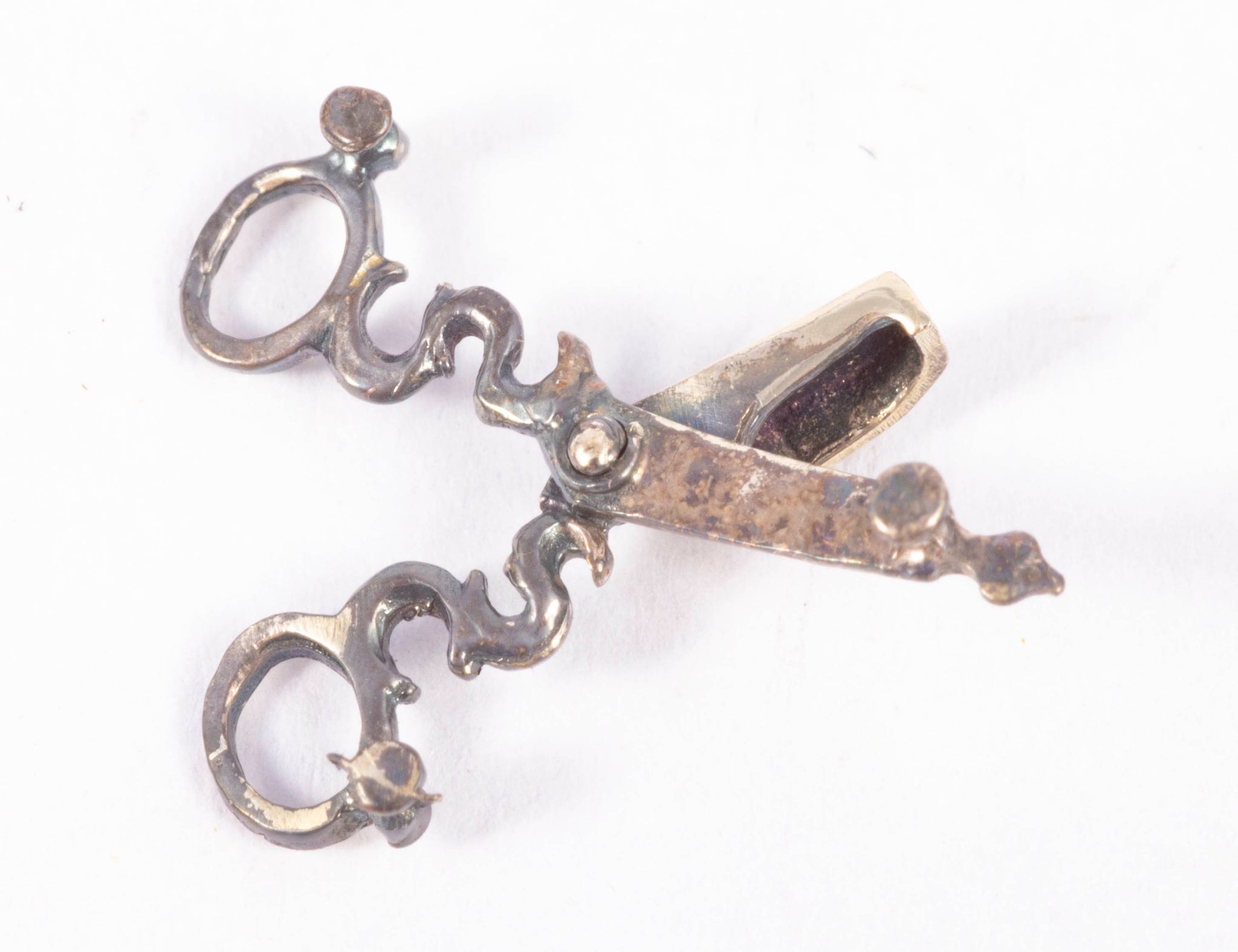 Dollhouse Miniature ~ Obadiah Fisher Sterling Silver Tray with Scissors for Candle