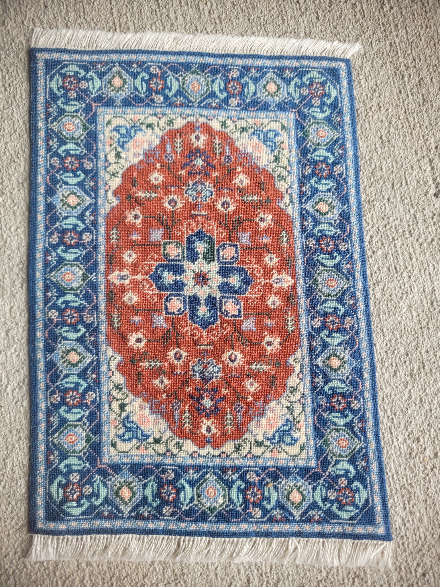 This is a Petit Point Blue and Red Elegant Rug