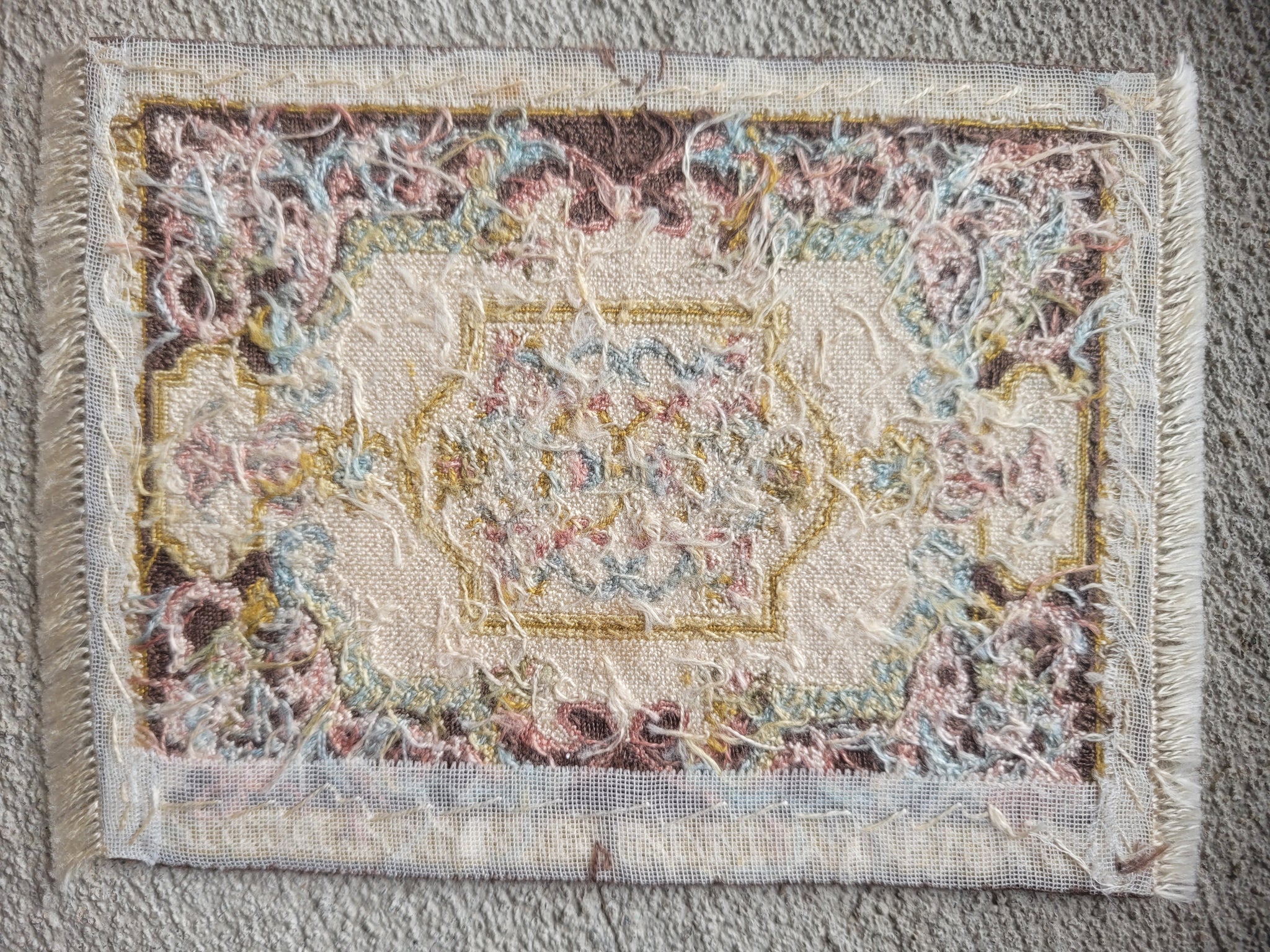 This is a Petit Point Elegant Rococo Rug with Scrolling Motifs and Decorative Medallion