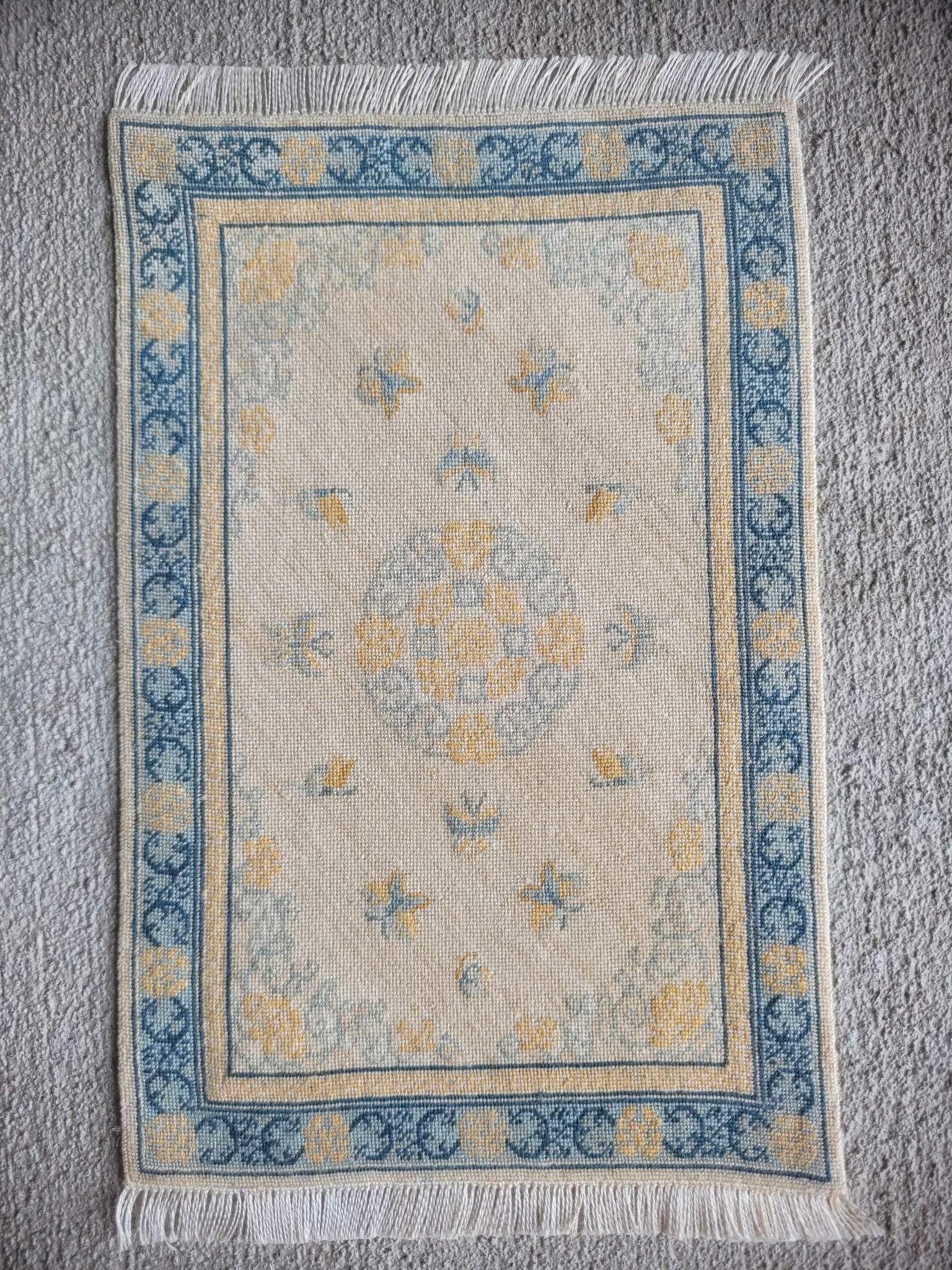 This is a Petit Point Fancy Butterflies and Medallion Rug