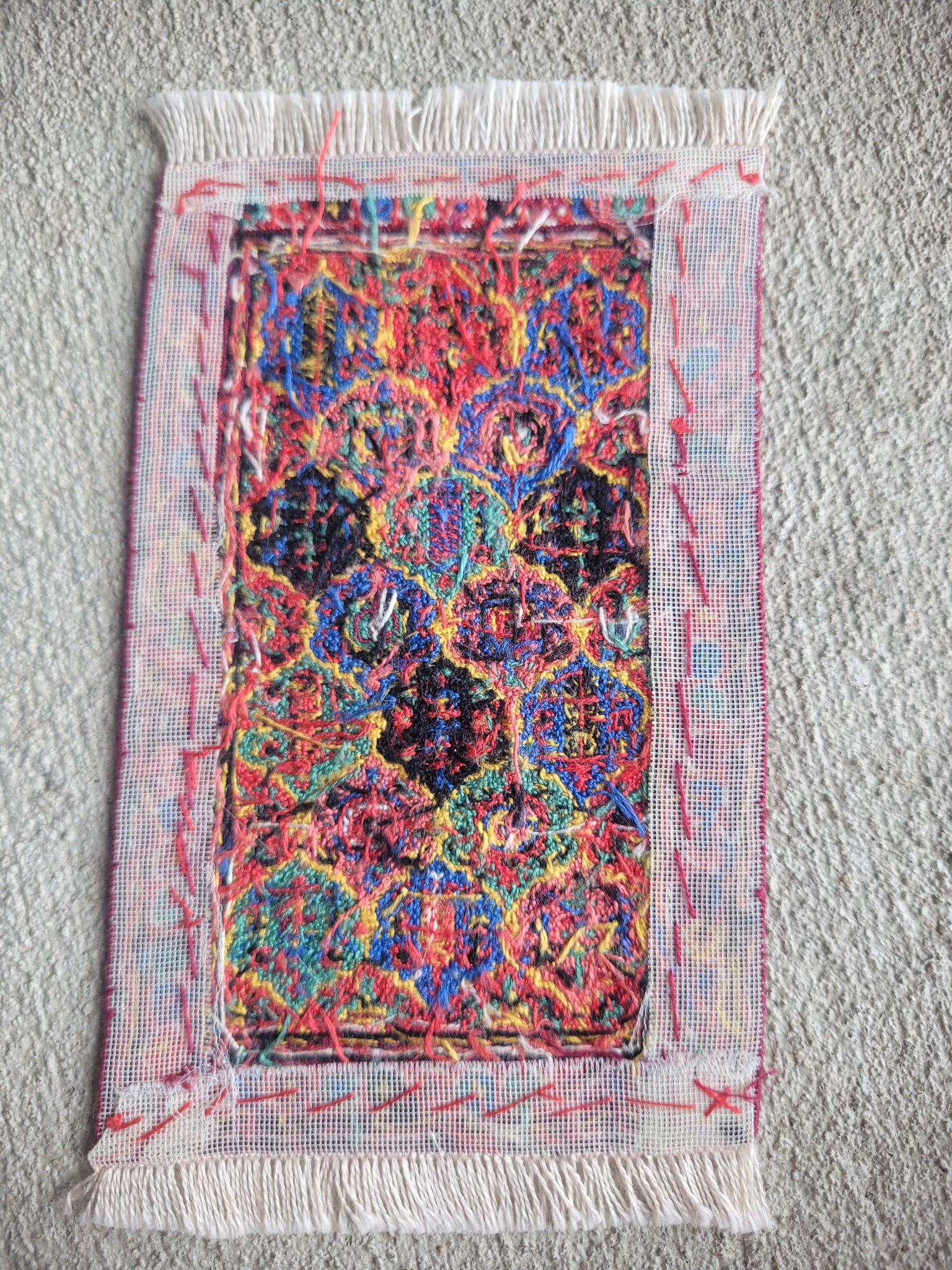 This is a Petit Point Hamadan Oriental Multicolored Rug