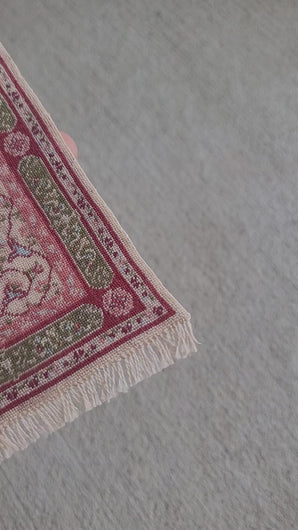 This is a Petit Point Ornamental Vine Pattern Rug with Fringe
