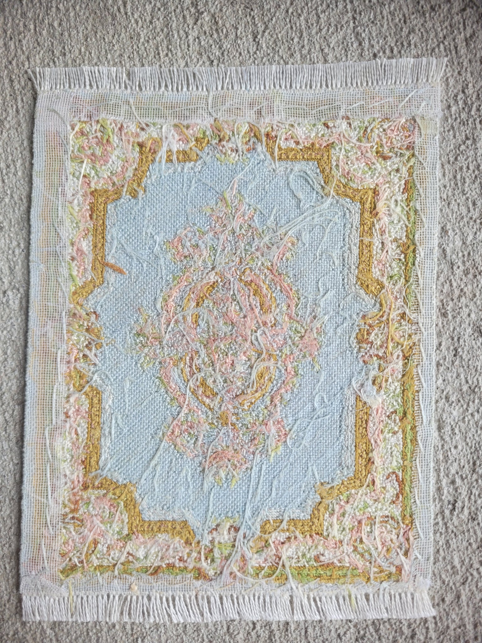 This is a Petit Point Pastel Baroque Rug with Floral Center Medallion
