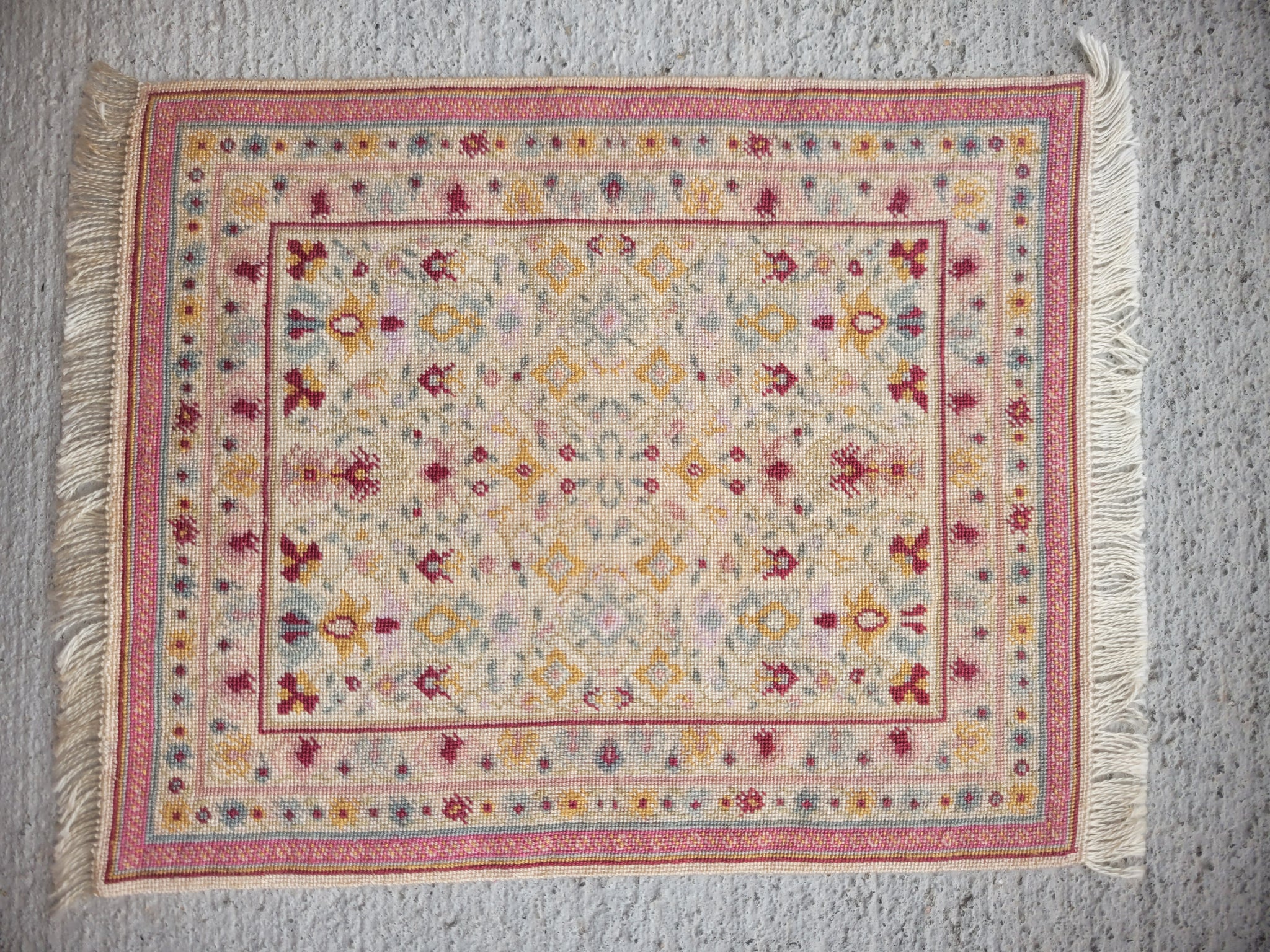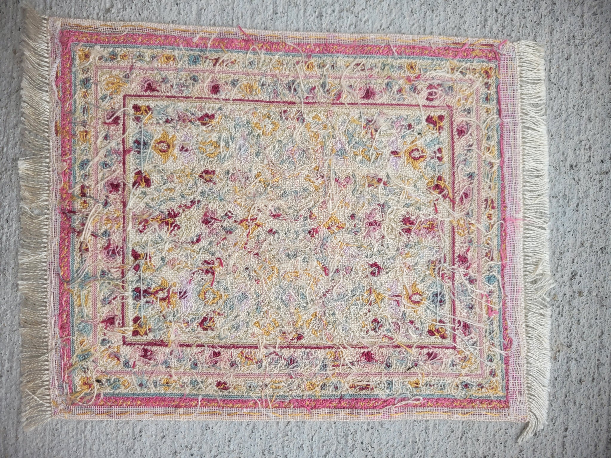 This is a Petit Point Vintage Faded Pink Floral Rug