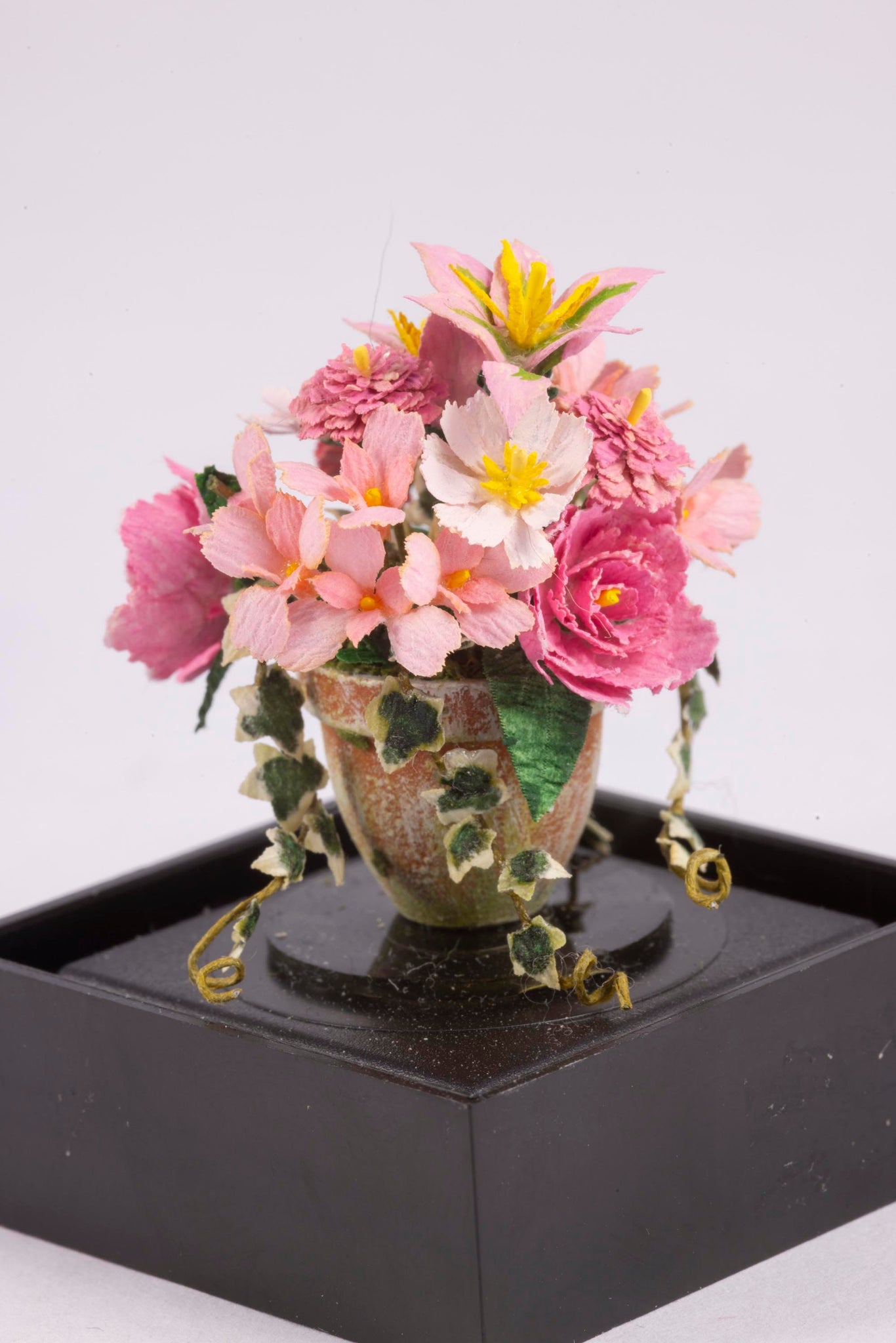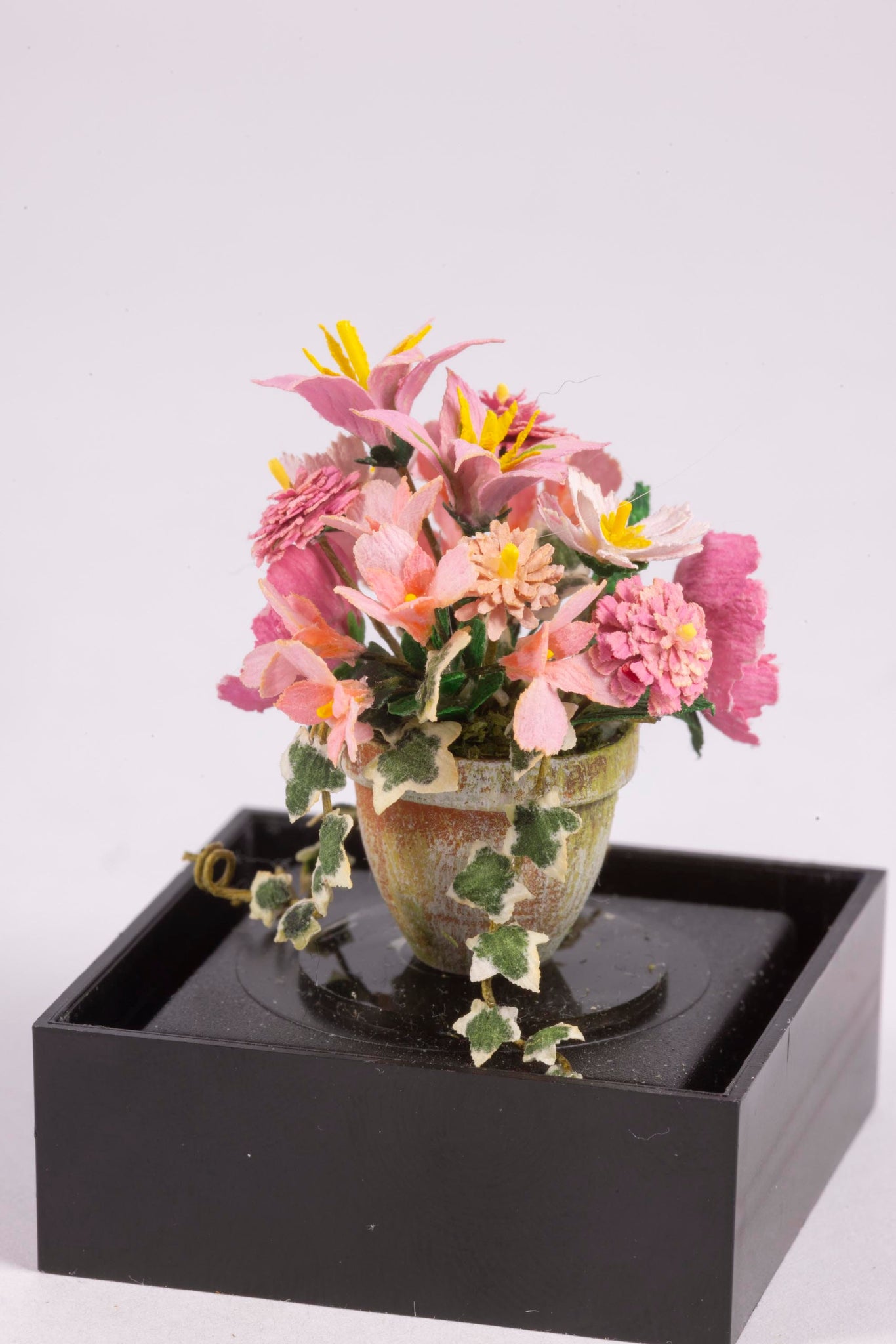 Dollhouse Miniature ~ Pink Flower Arrangement with Ivy by Paula Gilhooley
