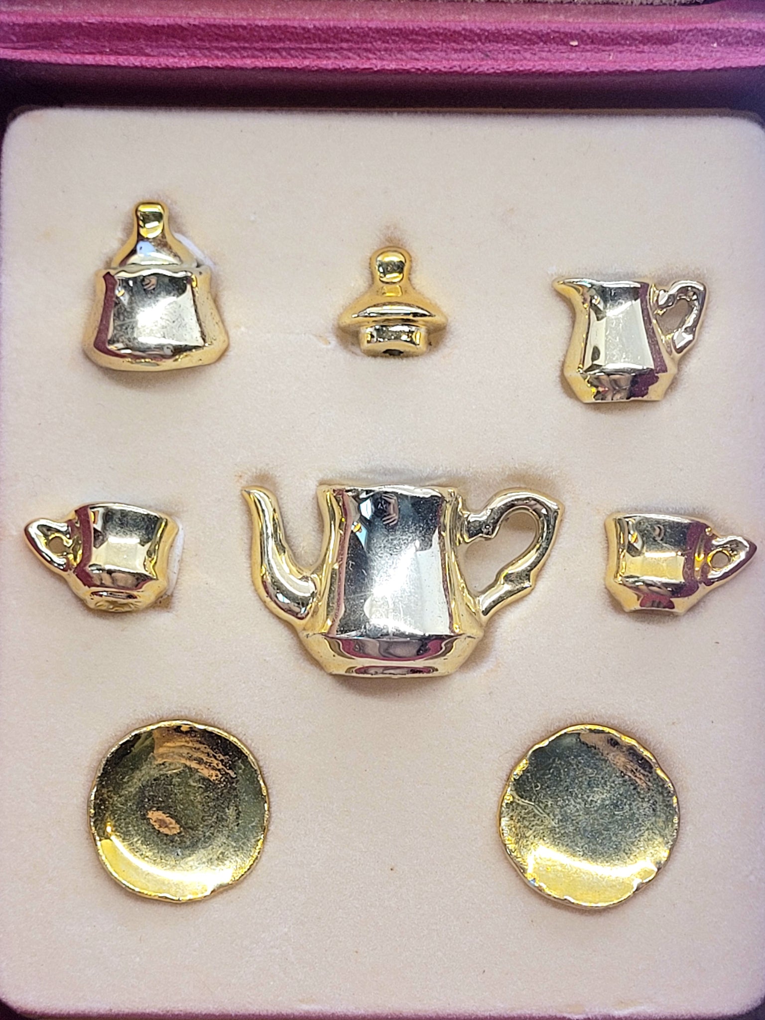Dollhouse Miniature ~ Reutter Porcelain 8pc Golden Tea Set