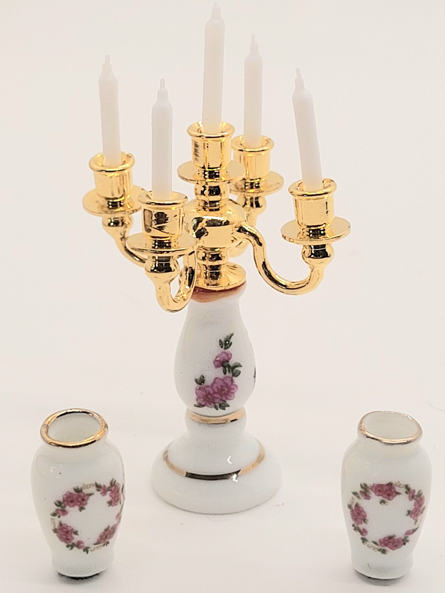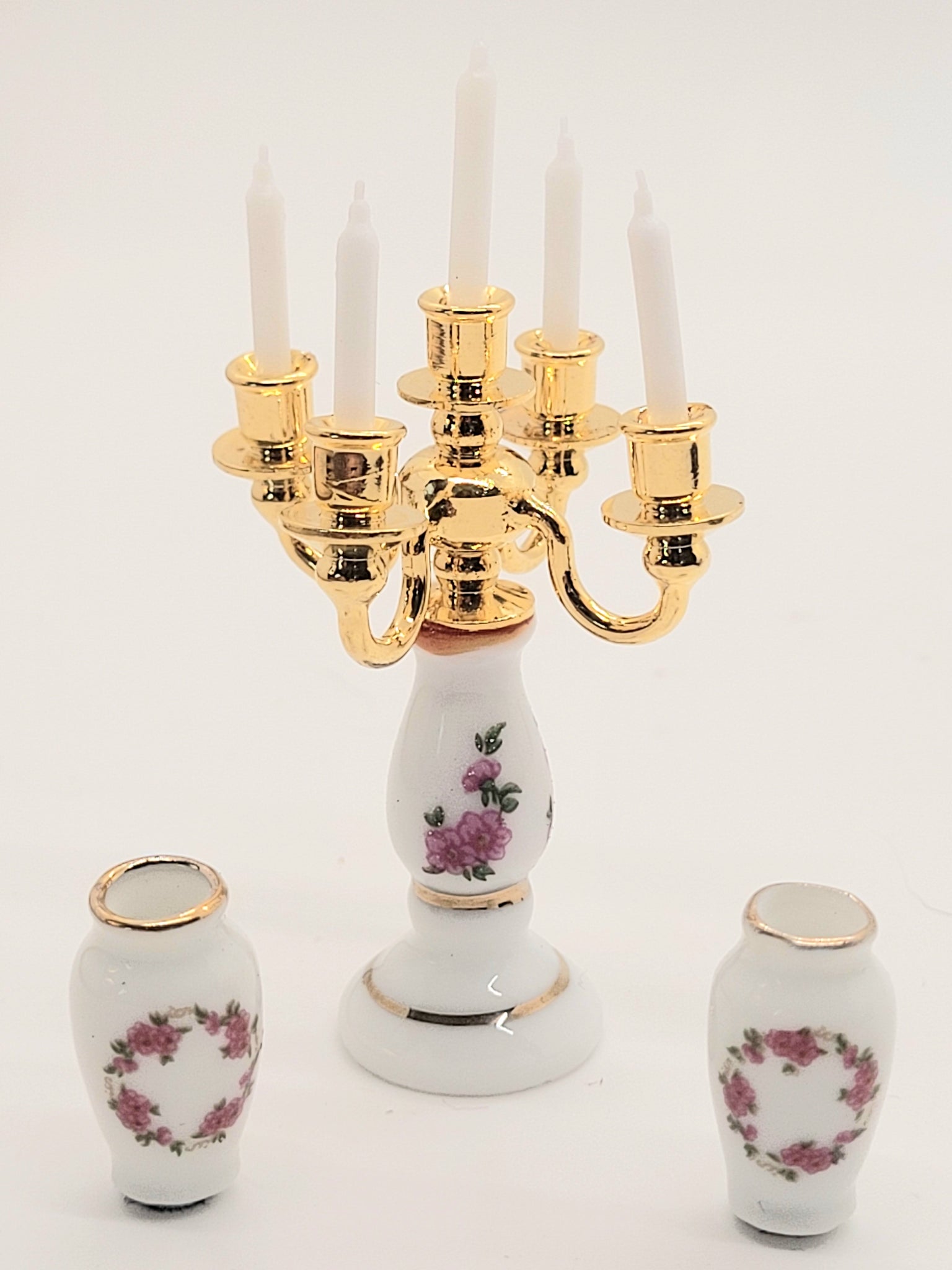 This is a 3 piece Set made by Reutter Porcelain including a Candle Holder and 2 Small Vases.