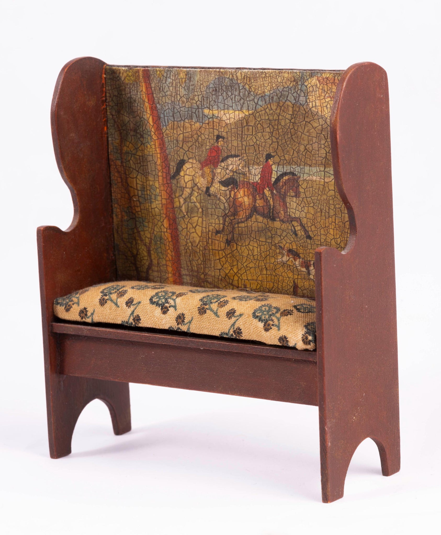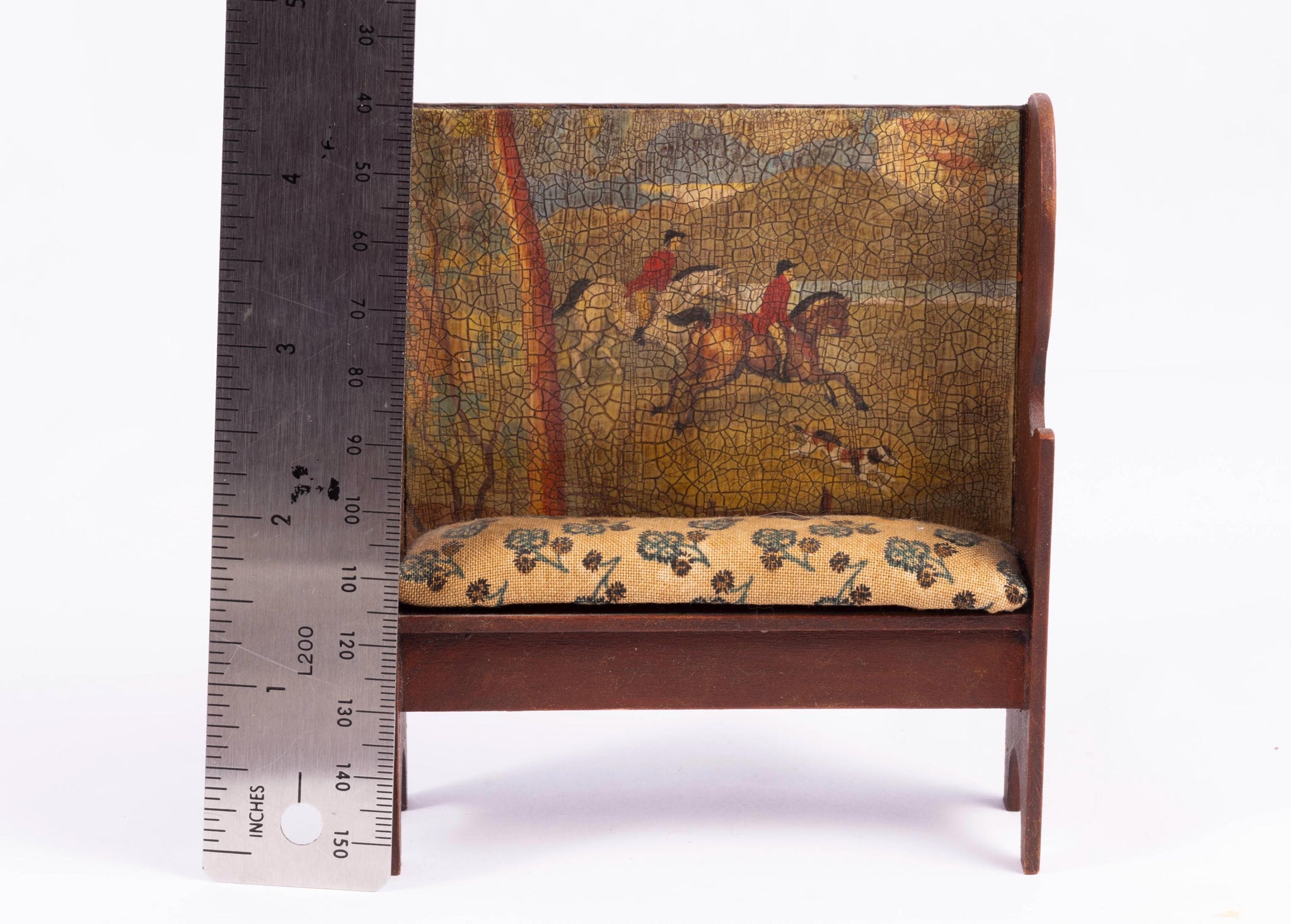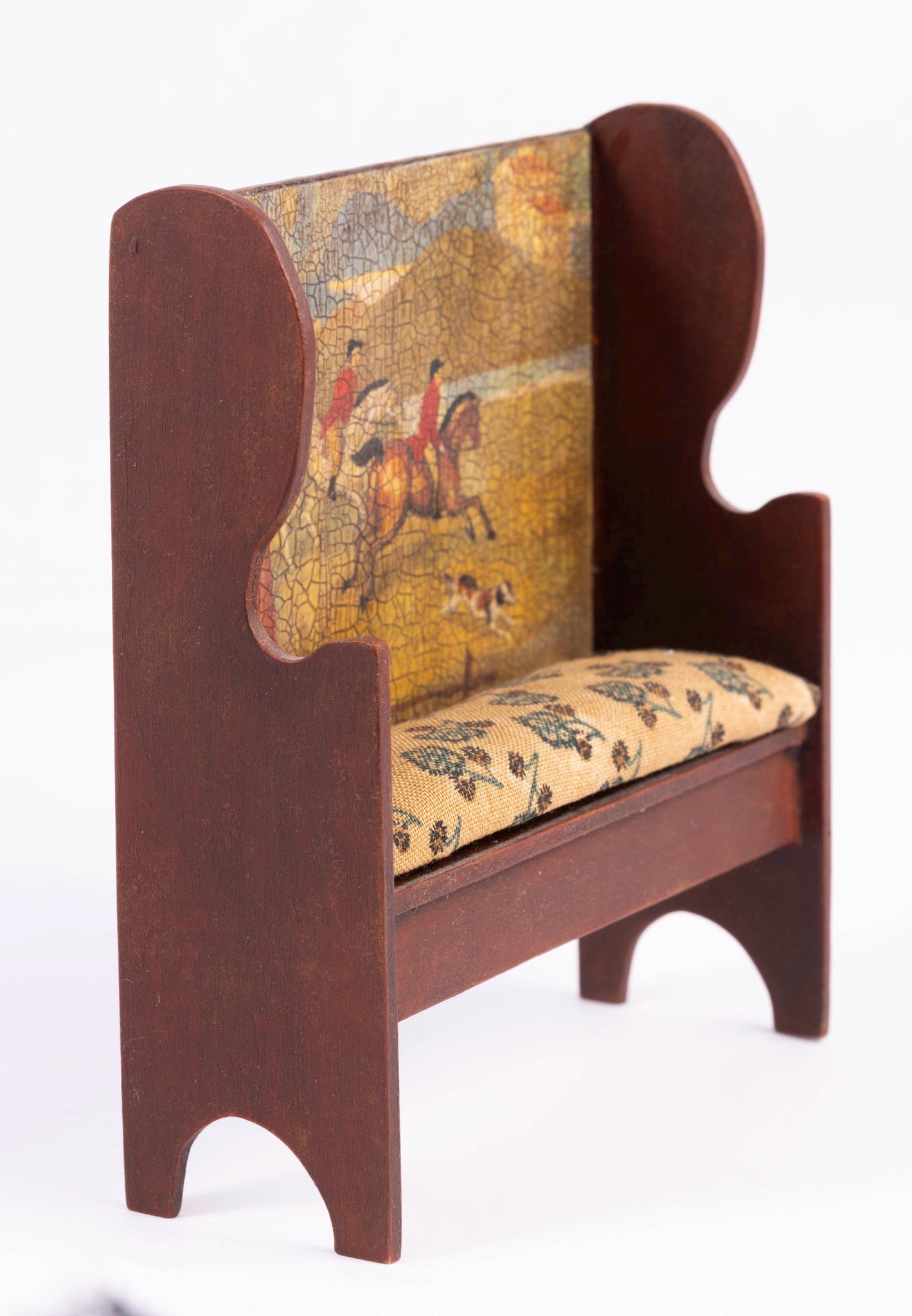 Dollhouse Miniature ~ Rustic Painted Settle with Hunt Scene