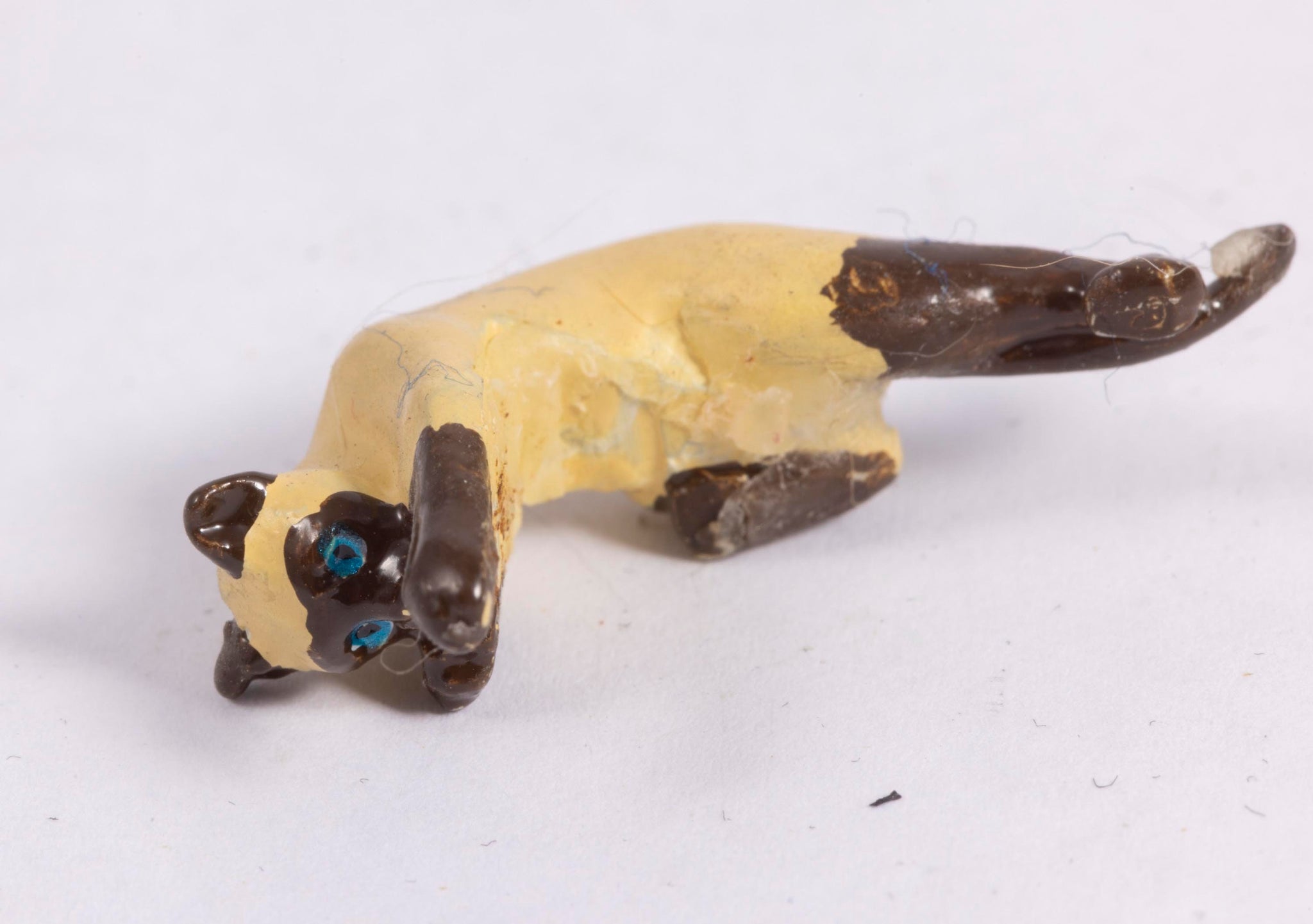 This is a hand painted Siamese cat. Made of metal. Cat is in hanging position. This is from Kraft collection.