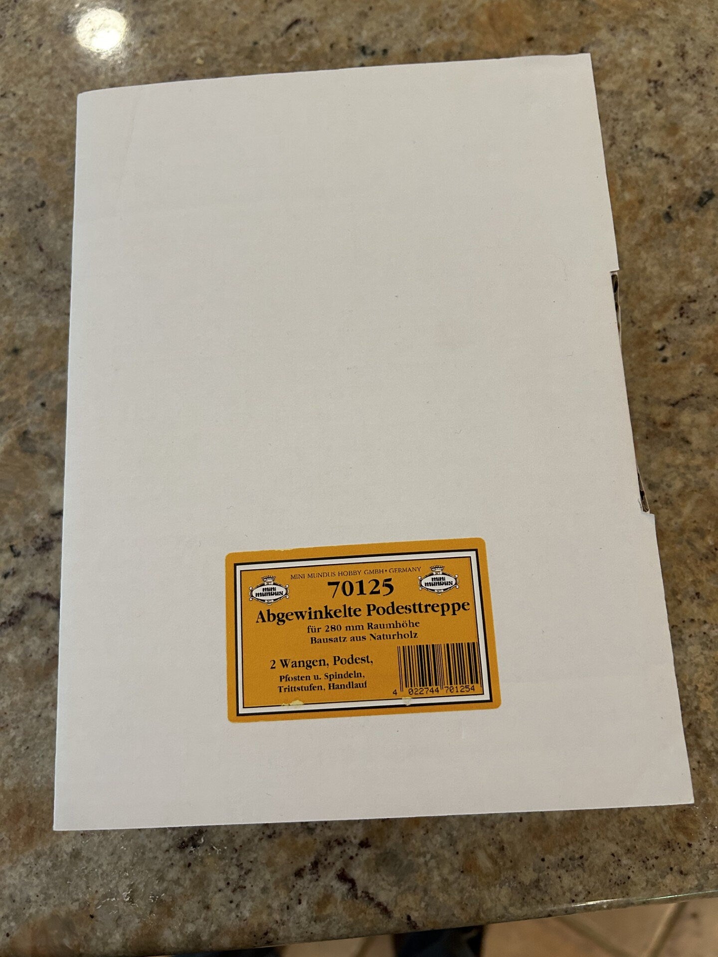 Natural wood construction kit by Mini Mundus, including stair railing.