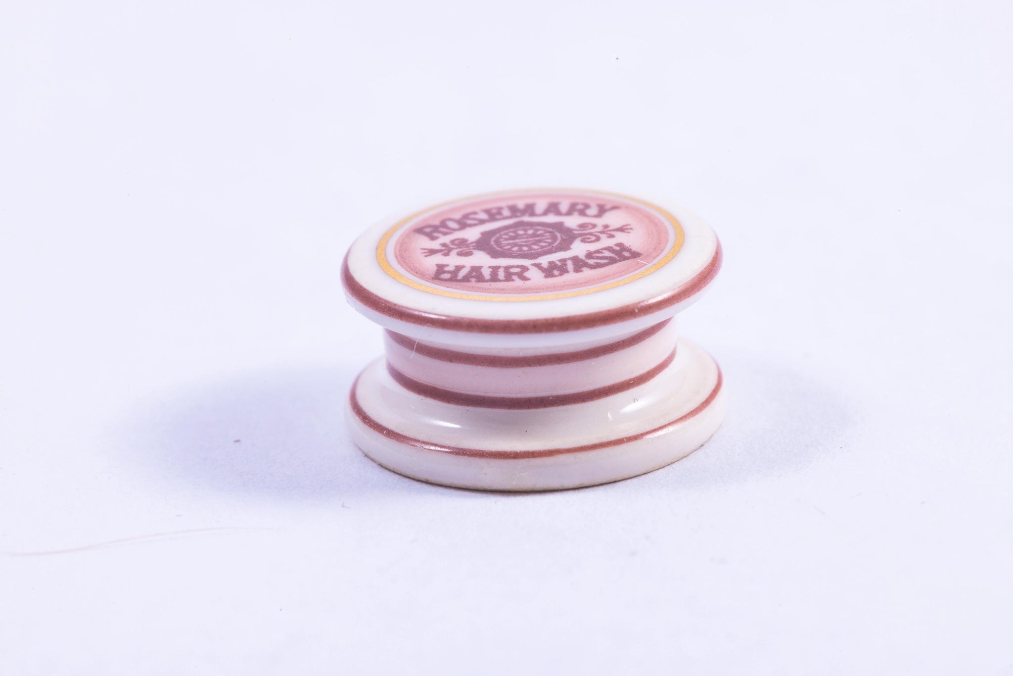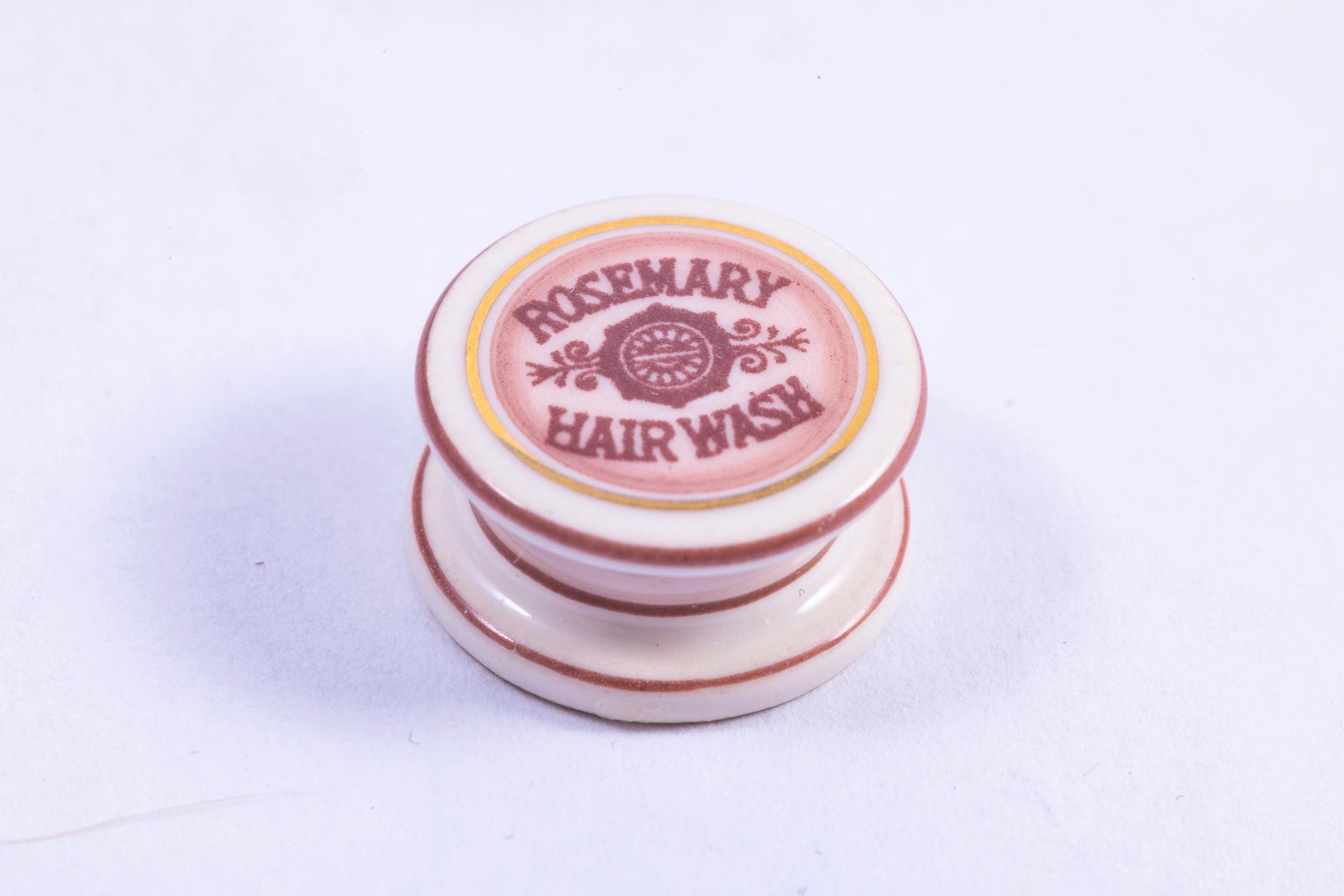 Dollhouse Miniature ~ Terry Curran Rosemary Hair Wash Round Jar, England - The Estate of Ursula Sauerberg