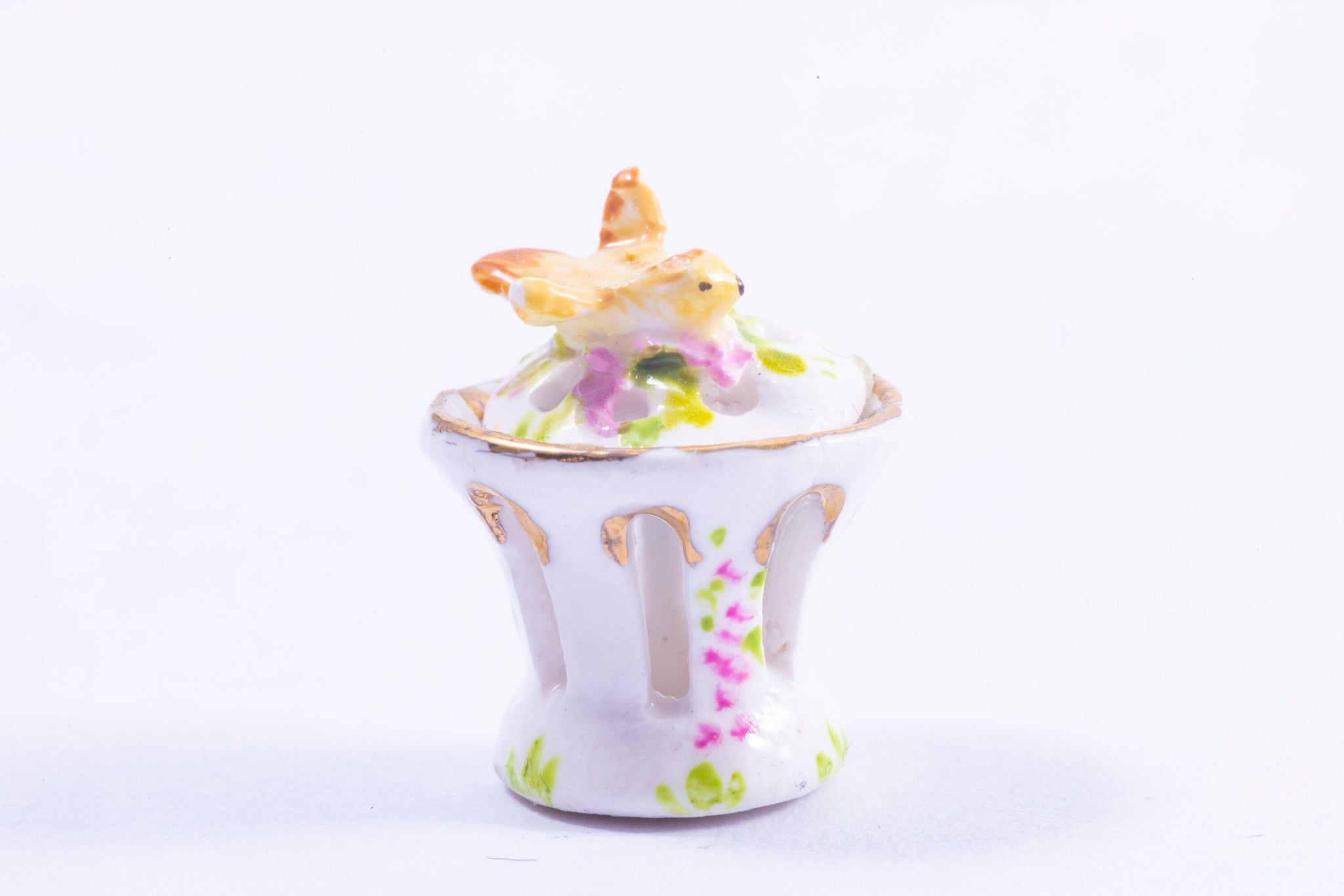 Dollhouse Miniature ~ Tiny Handmade Porcelain Dish with Bird by Veronique Cornish