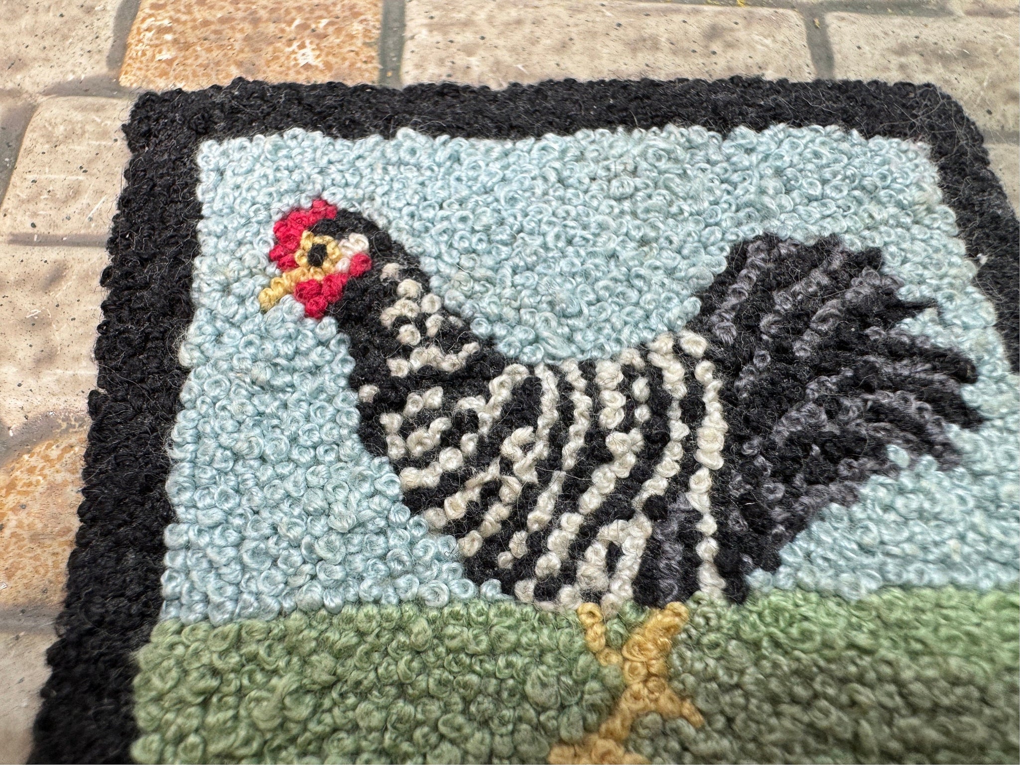 Vintage Artisan French Knot Welcome Mat Chicken