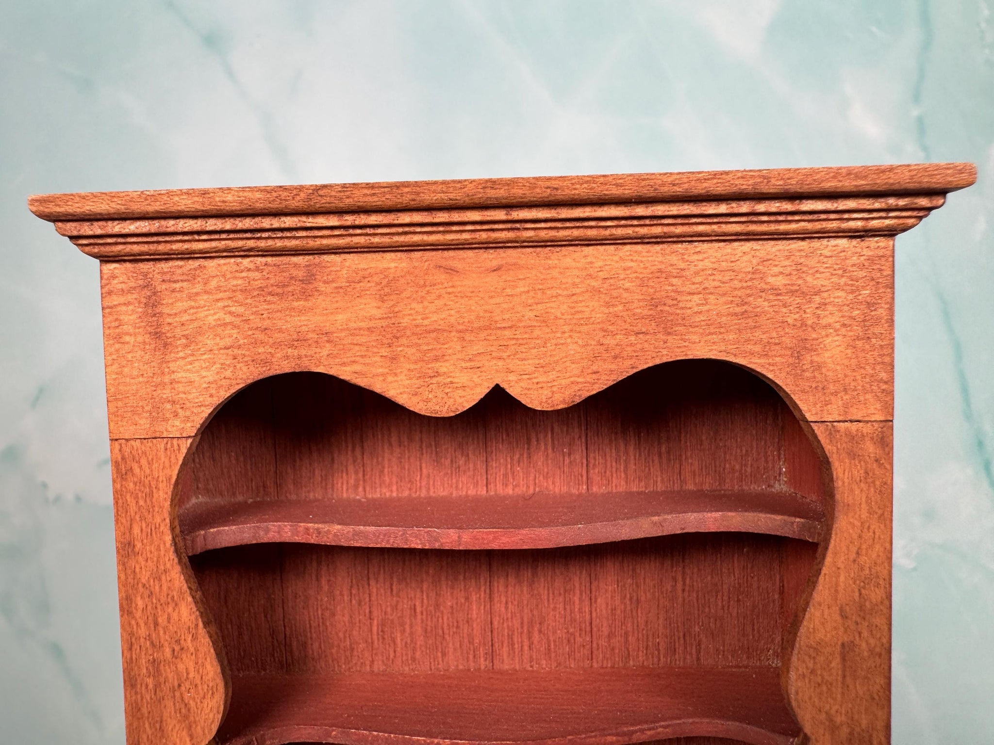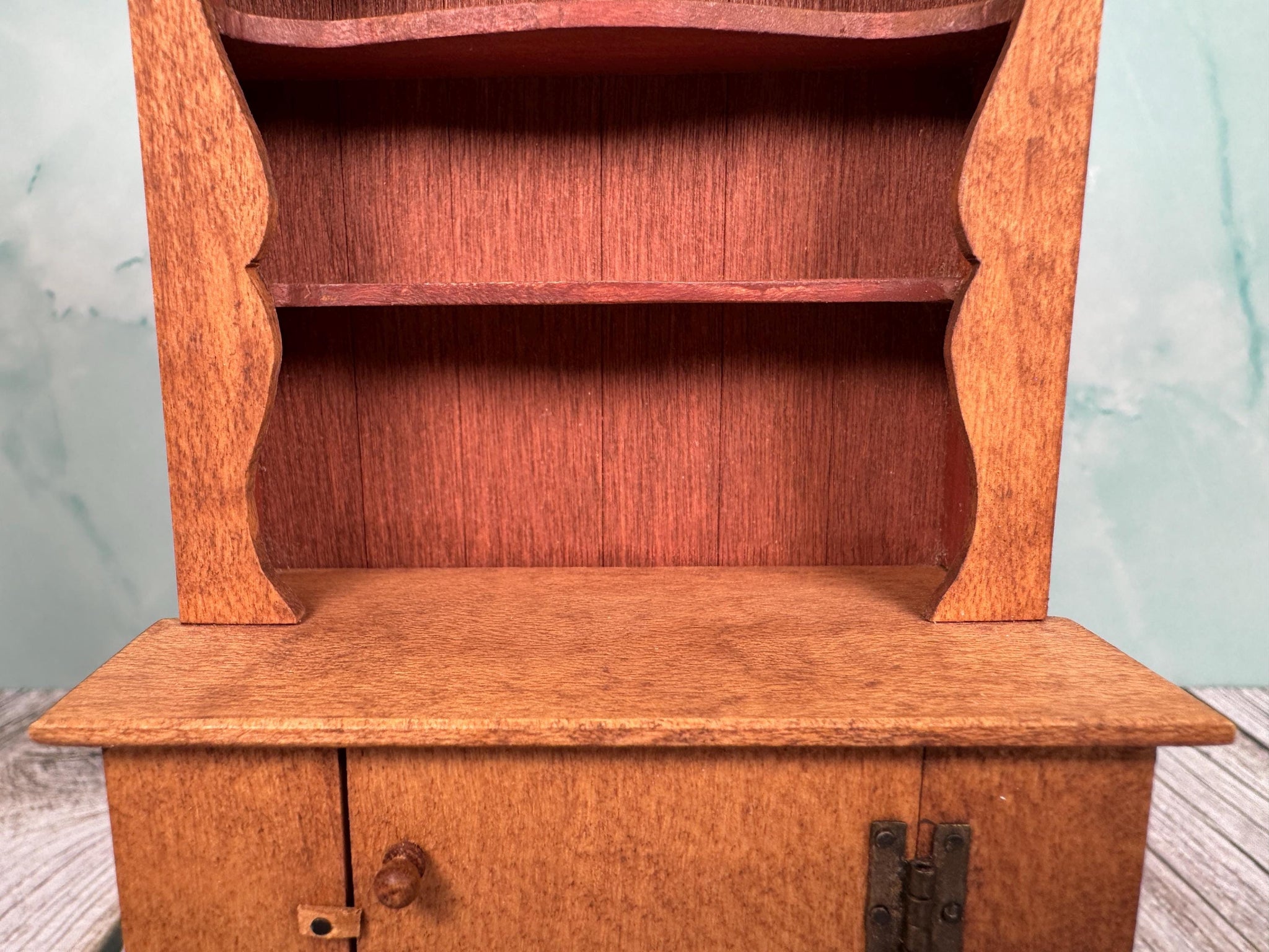 This is a beautiful handmade piece. Wooden with two shelves, wooden latch with shelf inside.