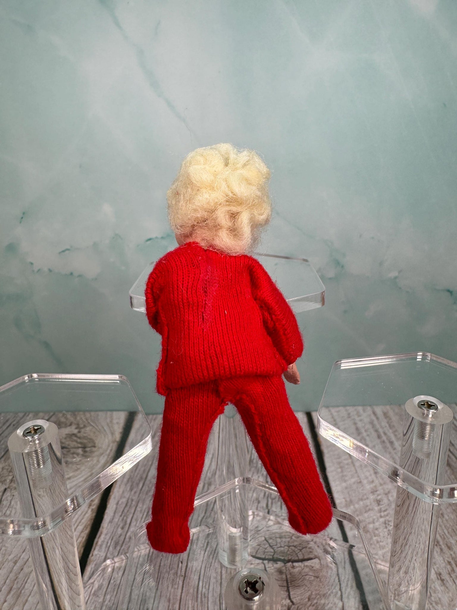 Vintage Artisan Handmade Handpainted OOAK Little Girl Doll In Pajamas With Blonde Curly Hair Standing