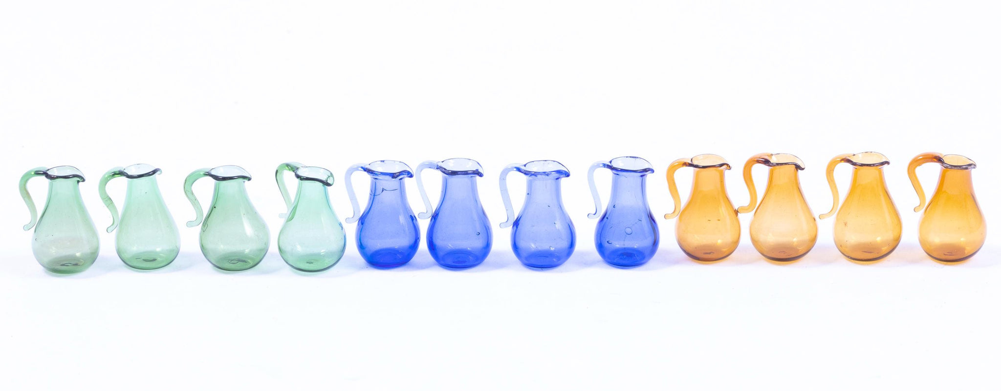 This is a vinage blown glass pitcher in blue, amber or green. Price listed is for one pitcher only. We have multiples, no longer being made, retired.