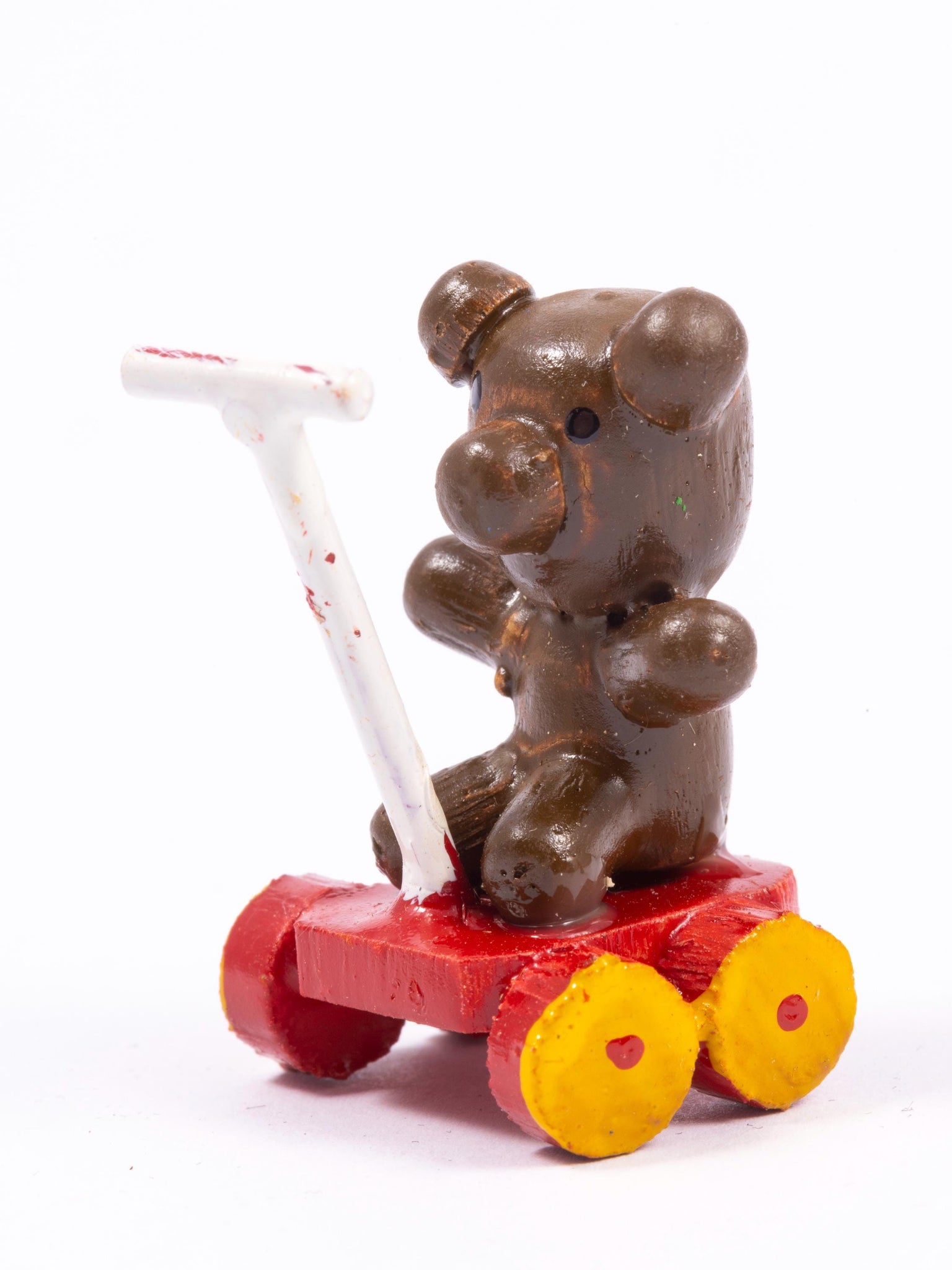 Dollhouse Miniature ~ Vintage Teddy Bear On Wheels Pull Toy