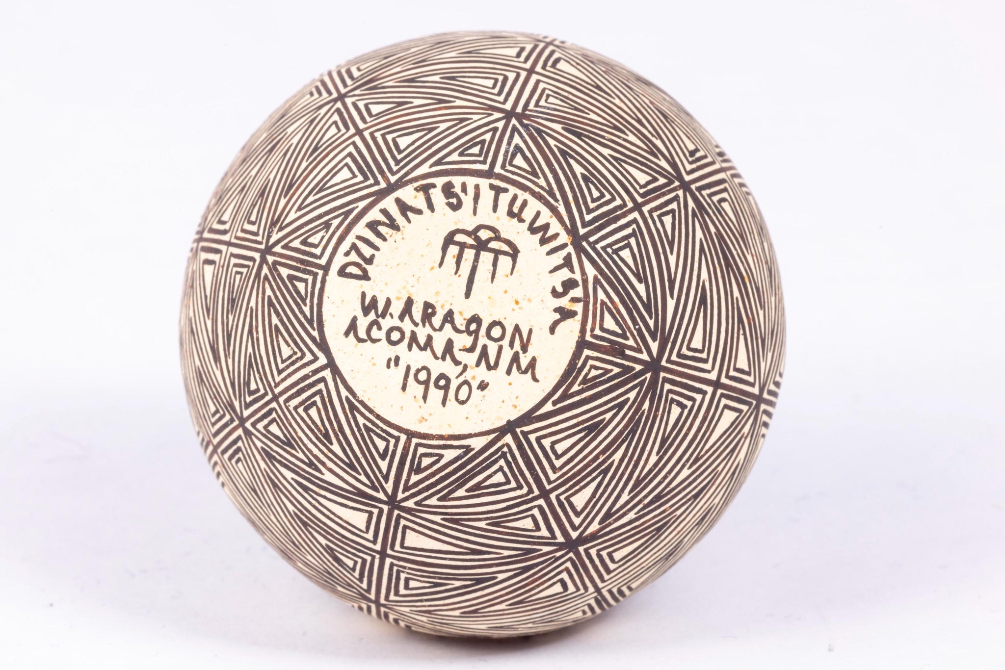This is a hand painted beautiful large pottery pot, Native American by Wanda Aragon. Signed and dated, 1990. Beautiful details and wonderul painting. Very tiny chip. A terrific piece from KBM estate.
