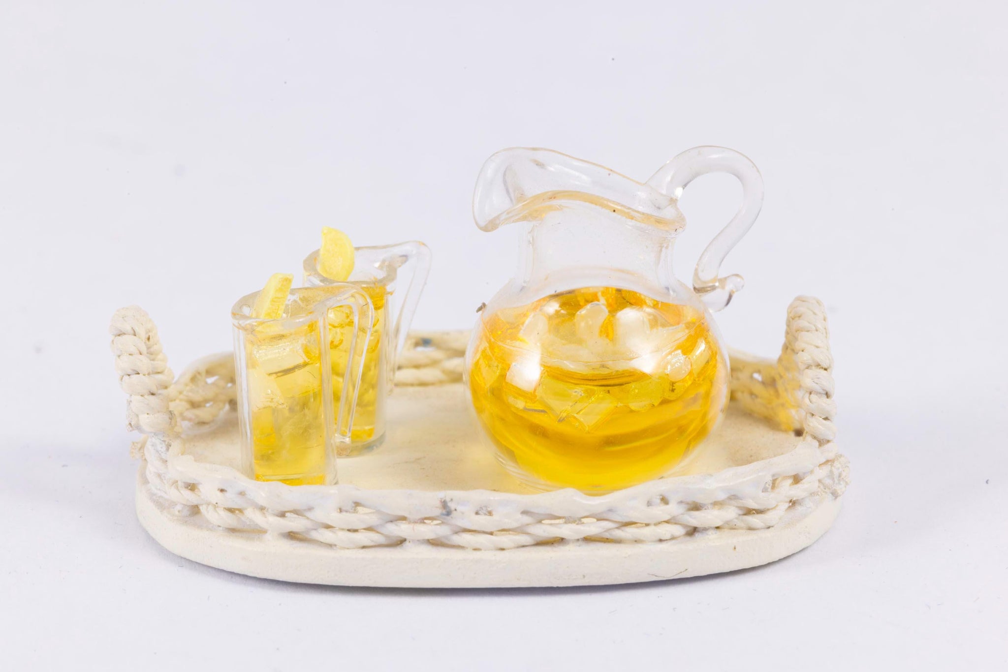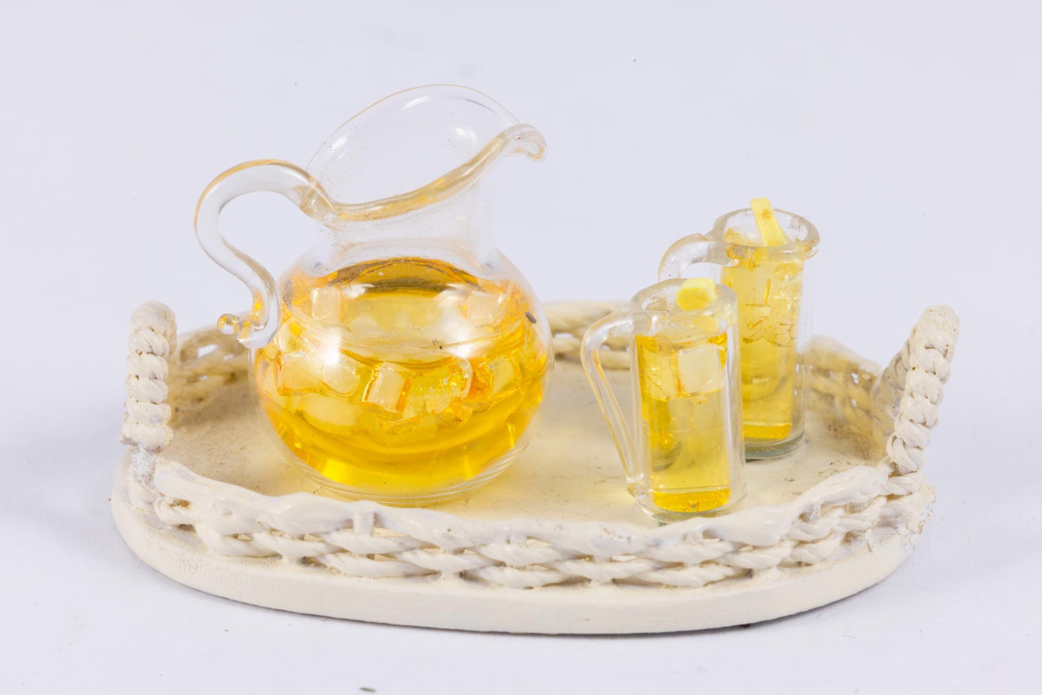 Dollhouse Miniature ~ Wicker Oval Tray with Lemonade For Two - Lee Lefkowitz Estate