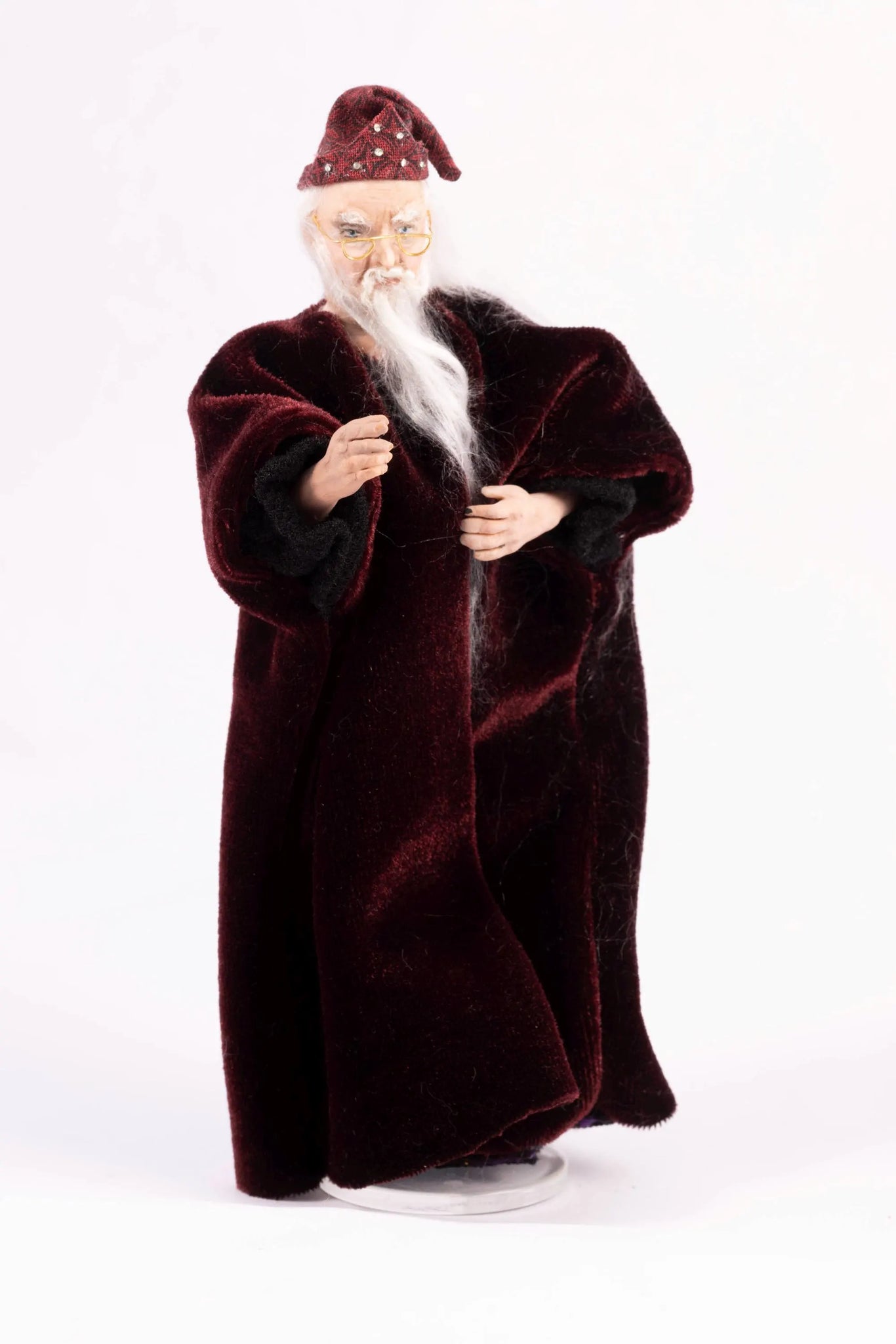This is a hand made wizard children and their professor and his bird. Because of copyright, the "you know who" doll characters are by Fern Vasi and dressed by Nantasy Fantasy. Mike Barbour made the Phoenix. This is a wonderful set, ready for Halloween!