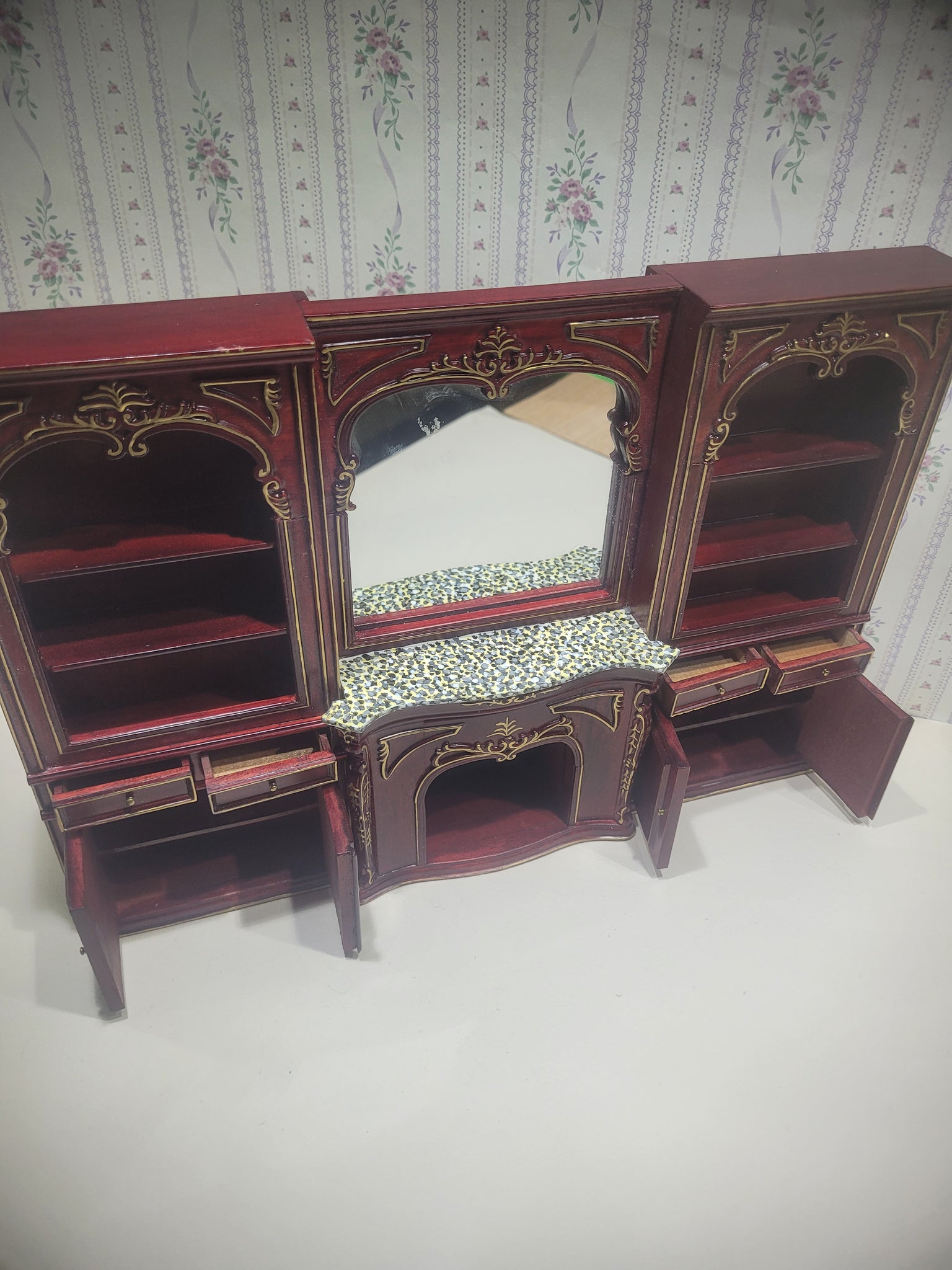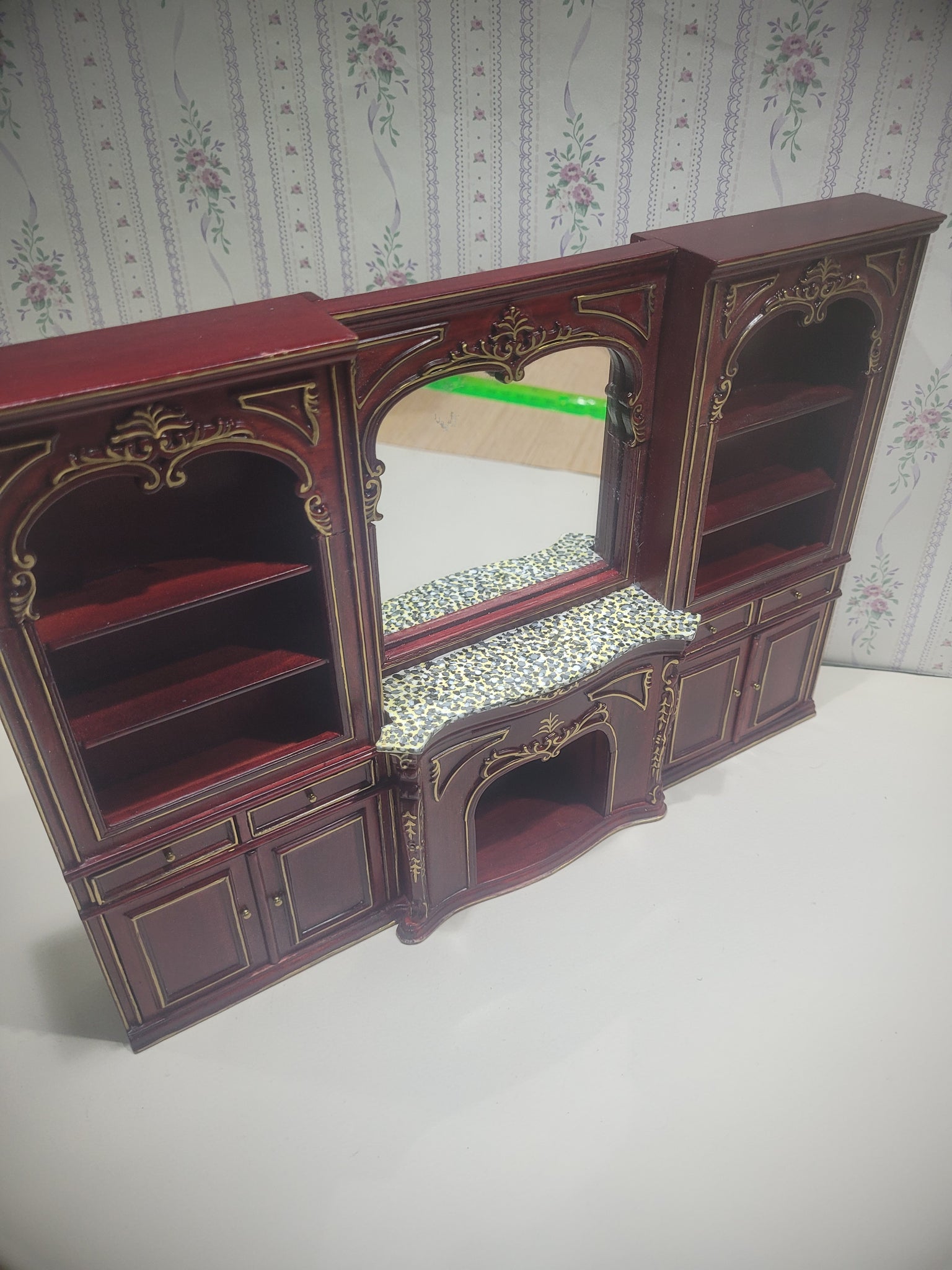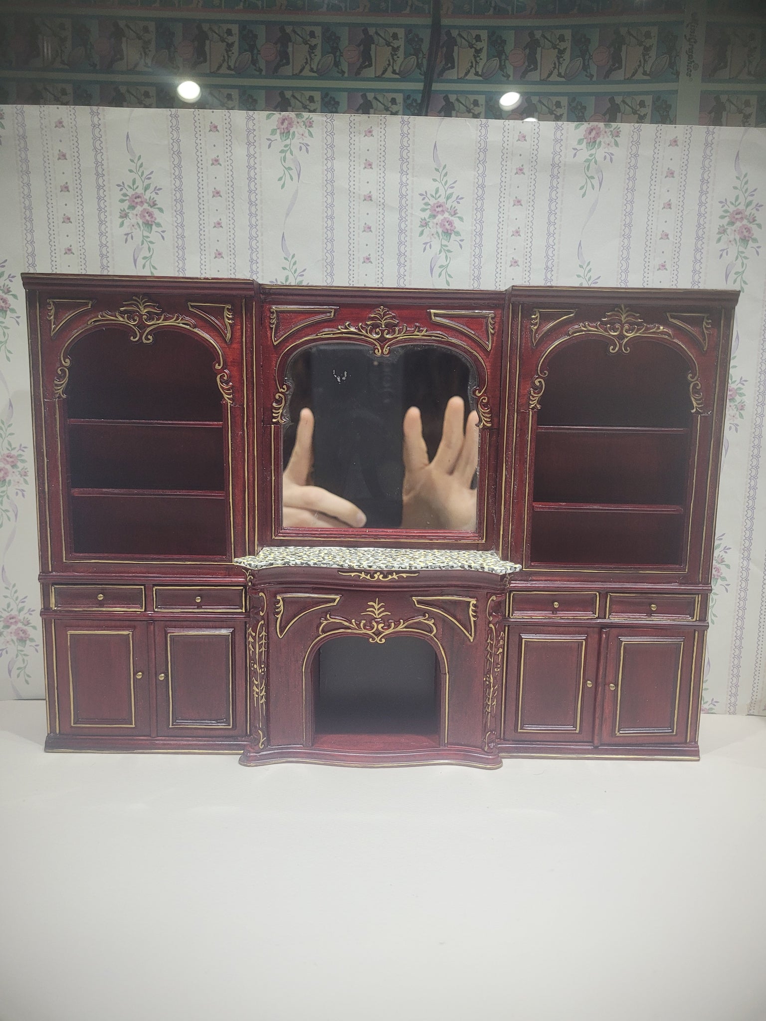 Fireplace Wooden Bookshelf Wall w/ Mirror. Units are not separatable.