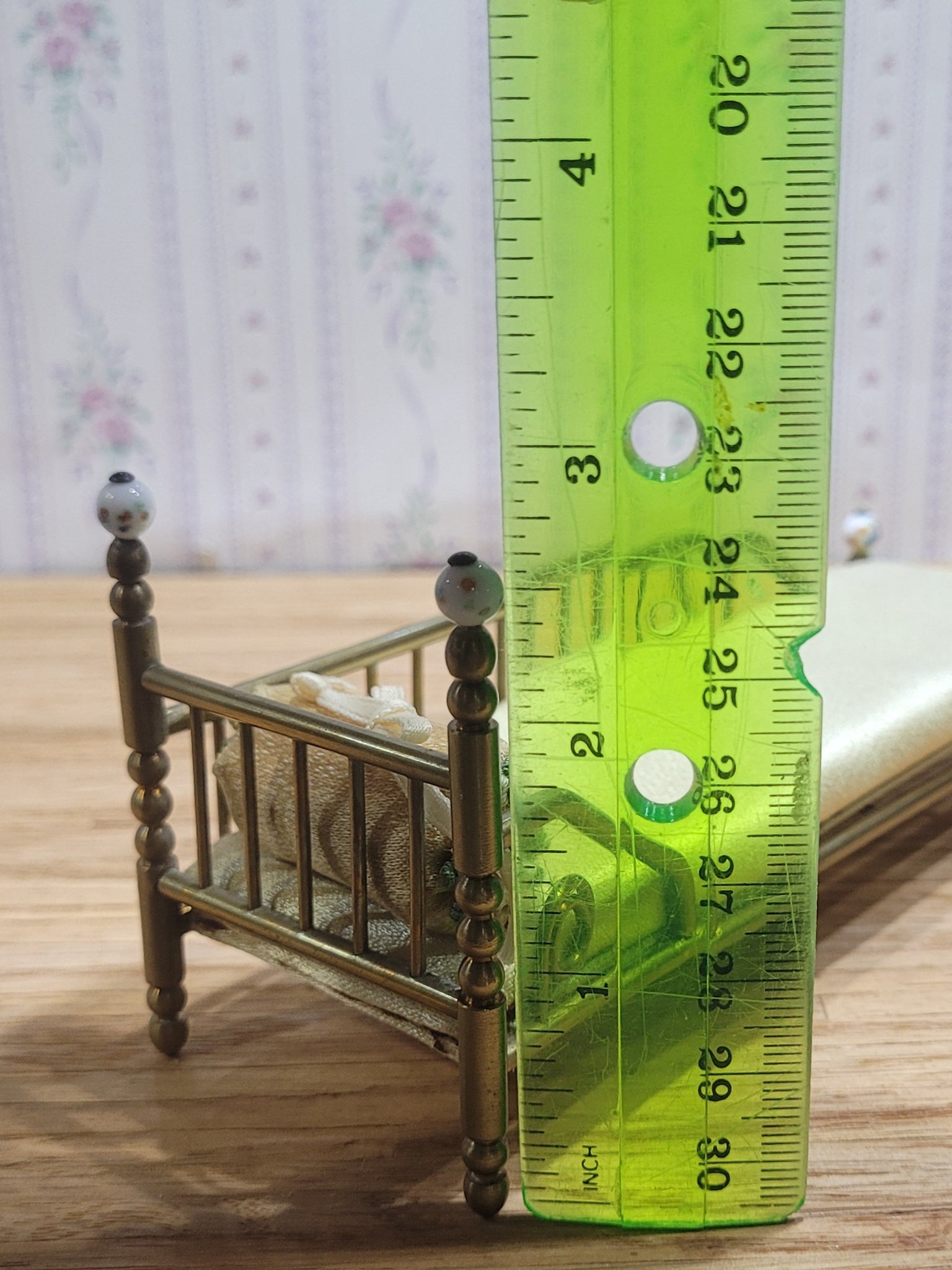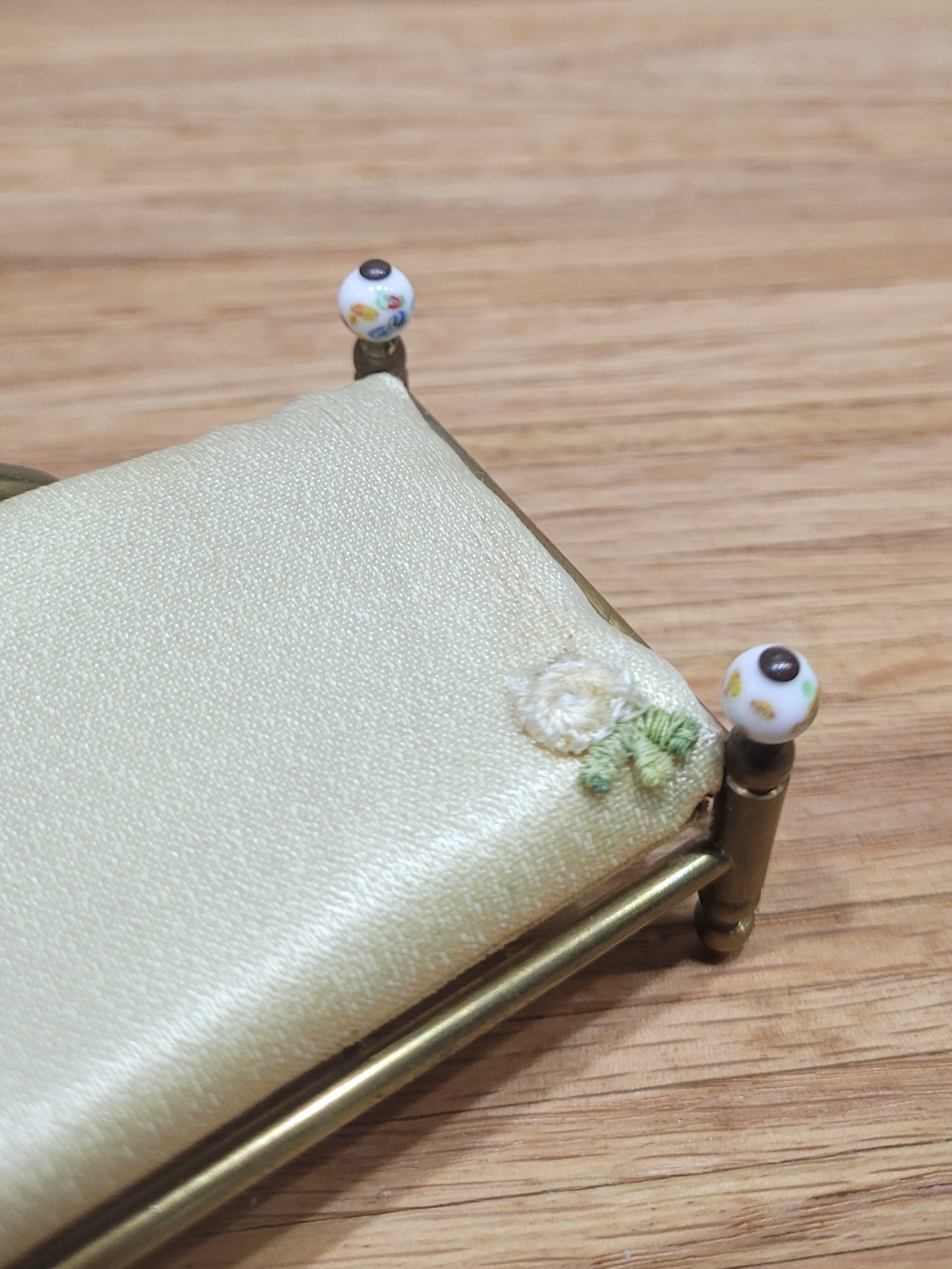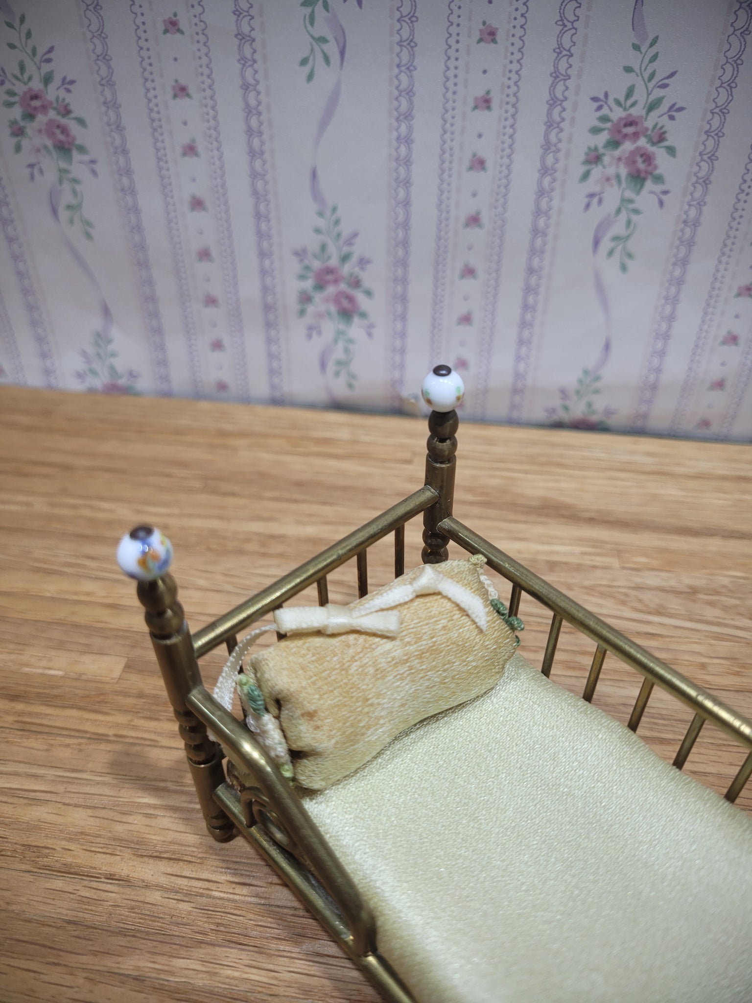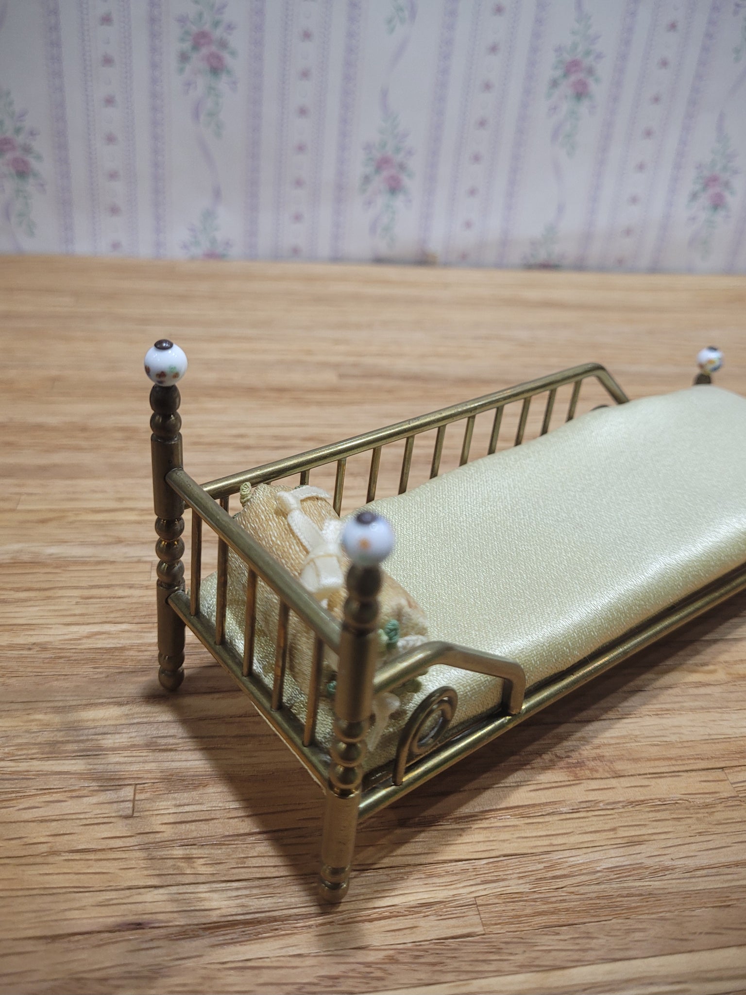 Gold Metal Bed with Round Pillow and Golden Mattress