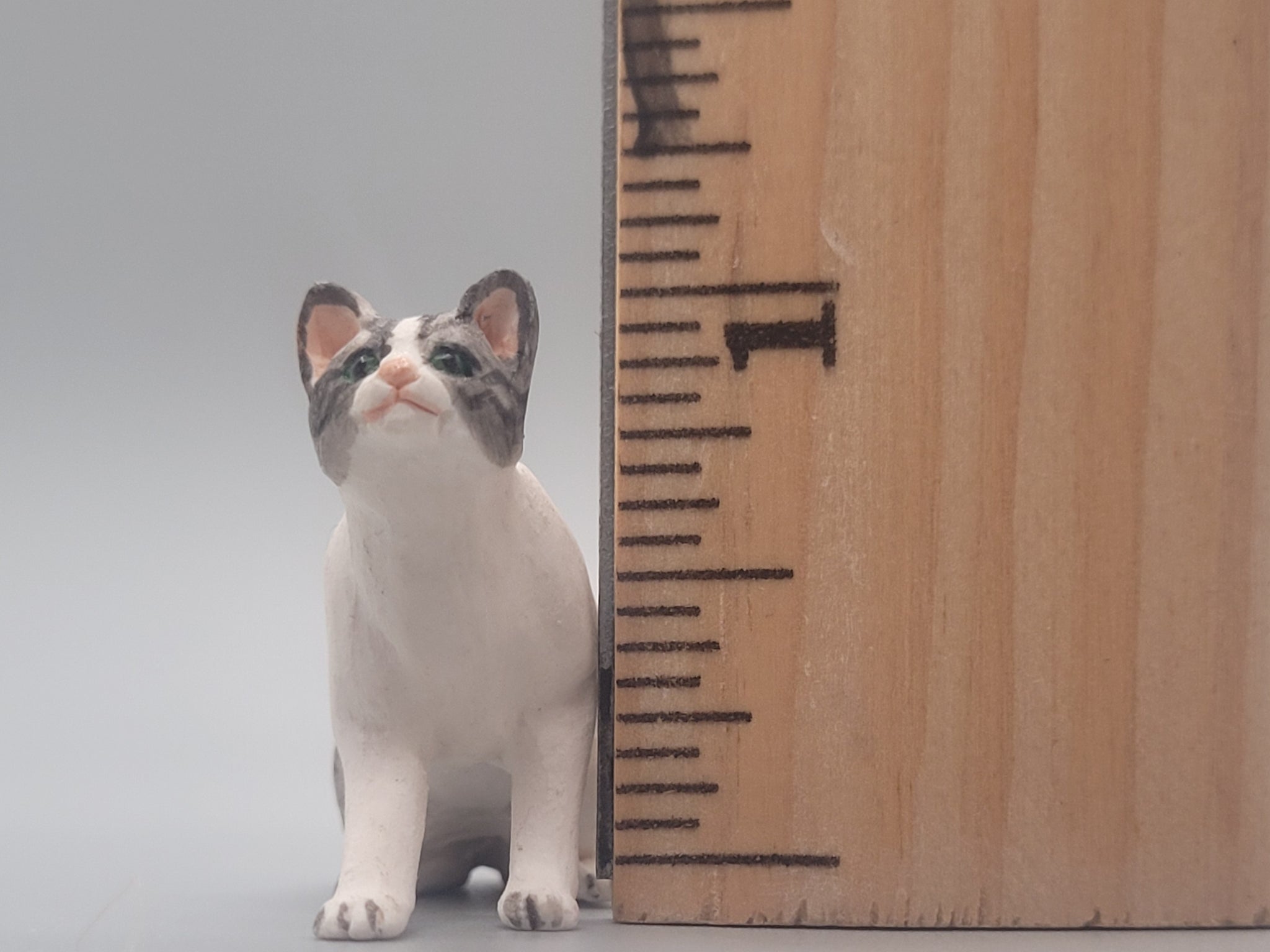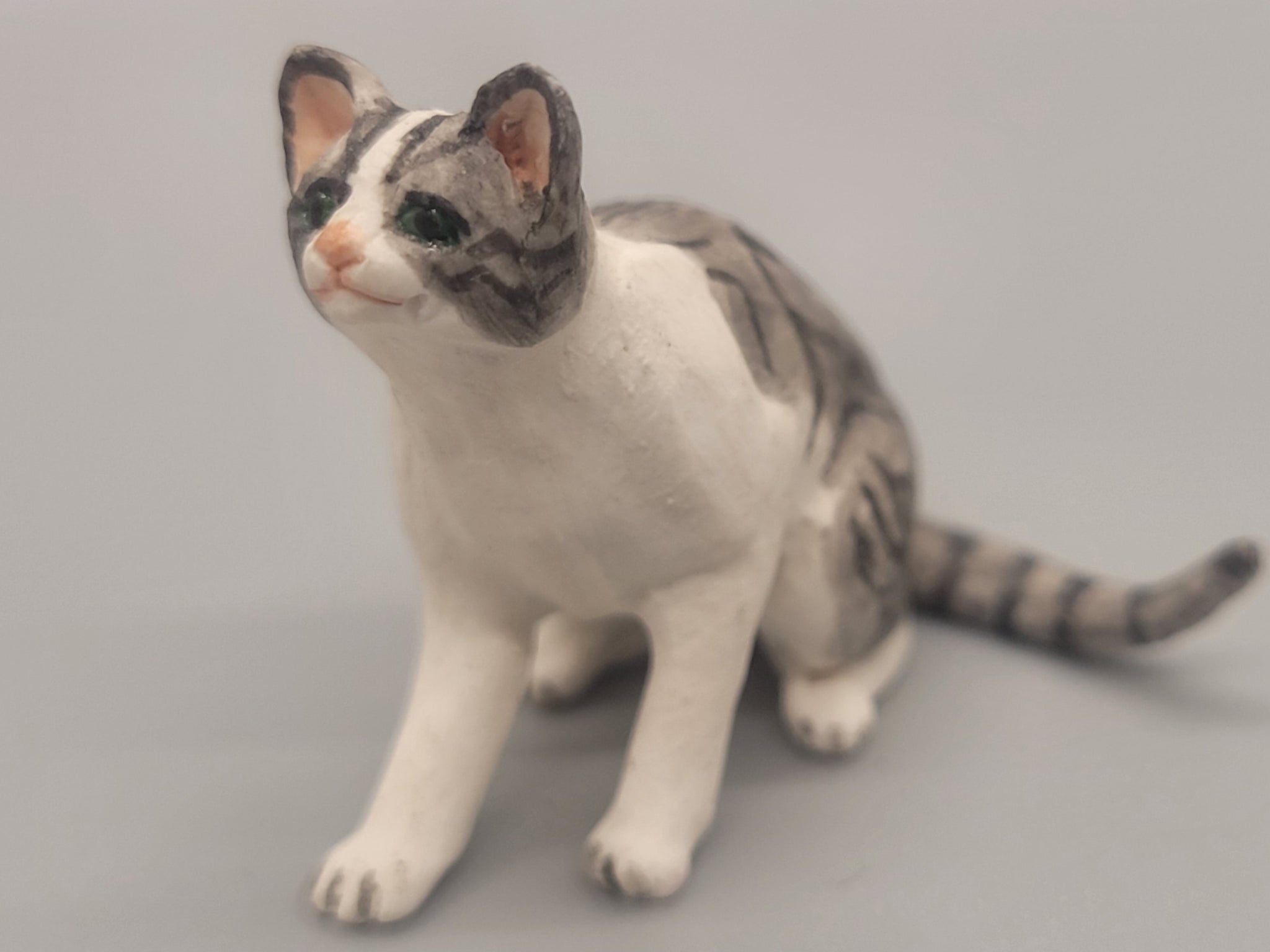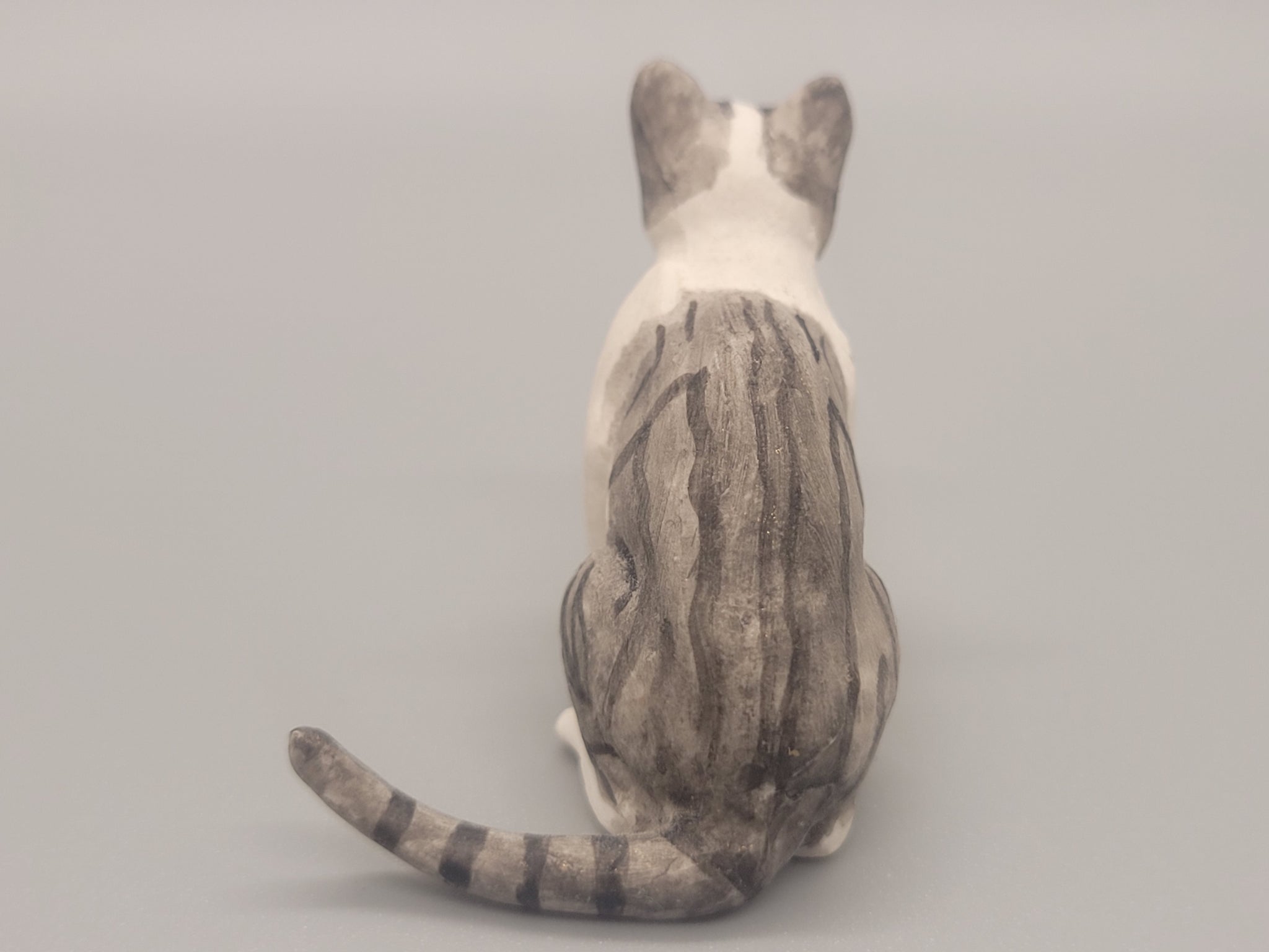 Miniature — Resin Grey Tabby Cat with Striped Patches, Sitting Position