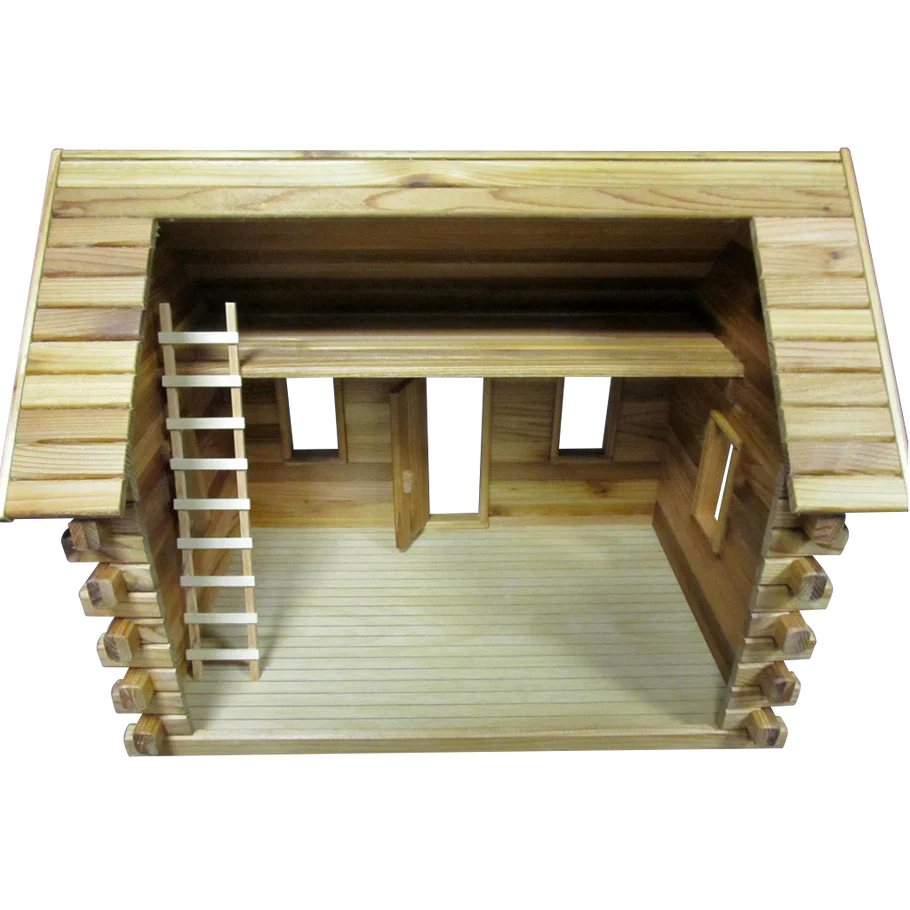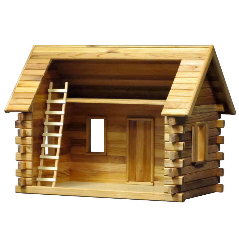 Lakeside Retreat Log Cabin Dollhouse Kit (Real Good Toys) has 1 room and a loft