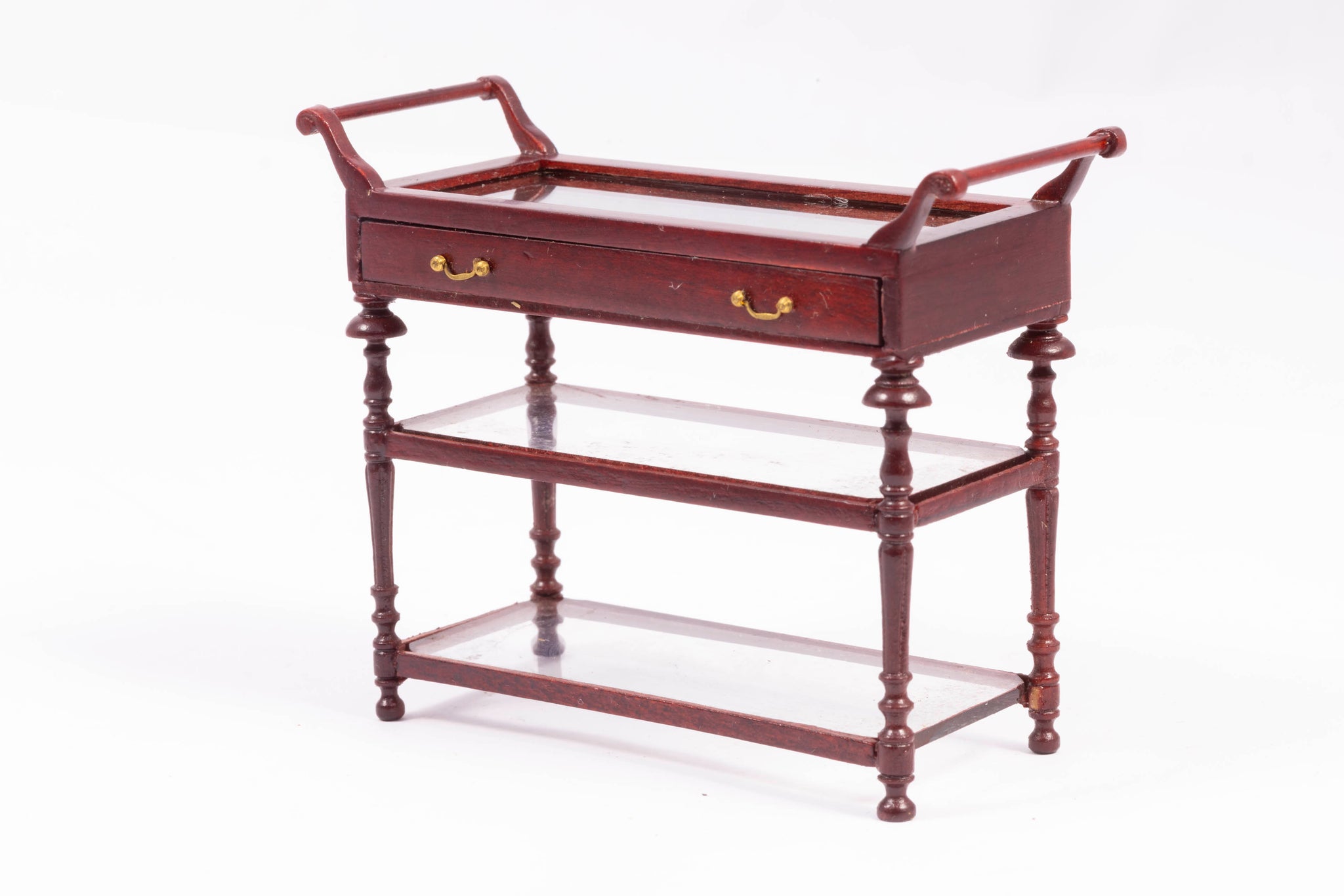 Mahogany Tea Cart - Bespaq. No wheels, glass top.