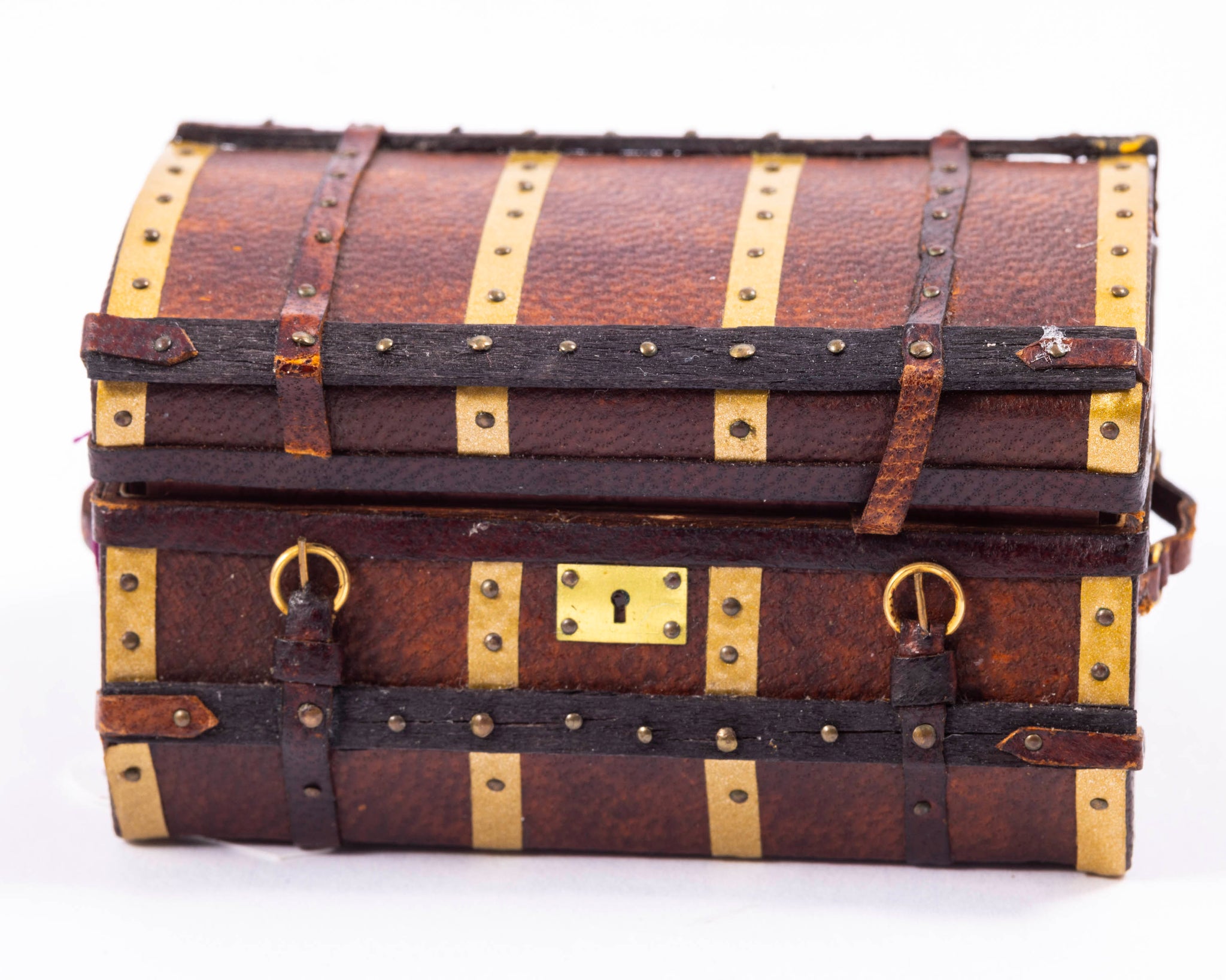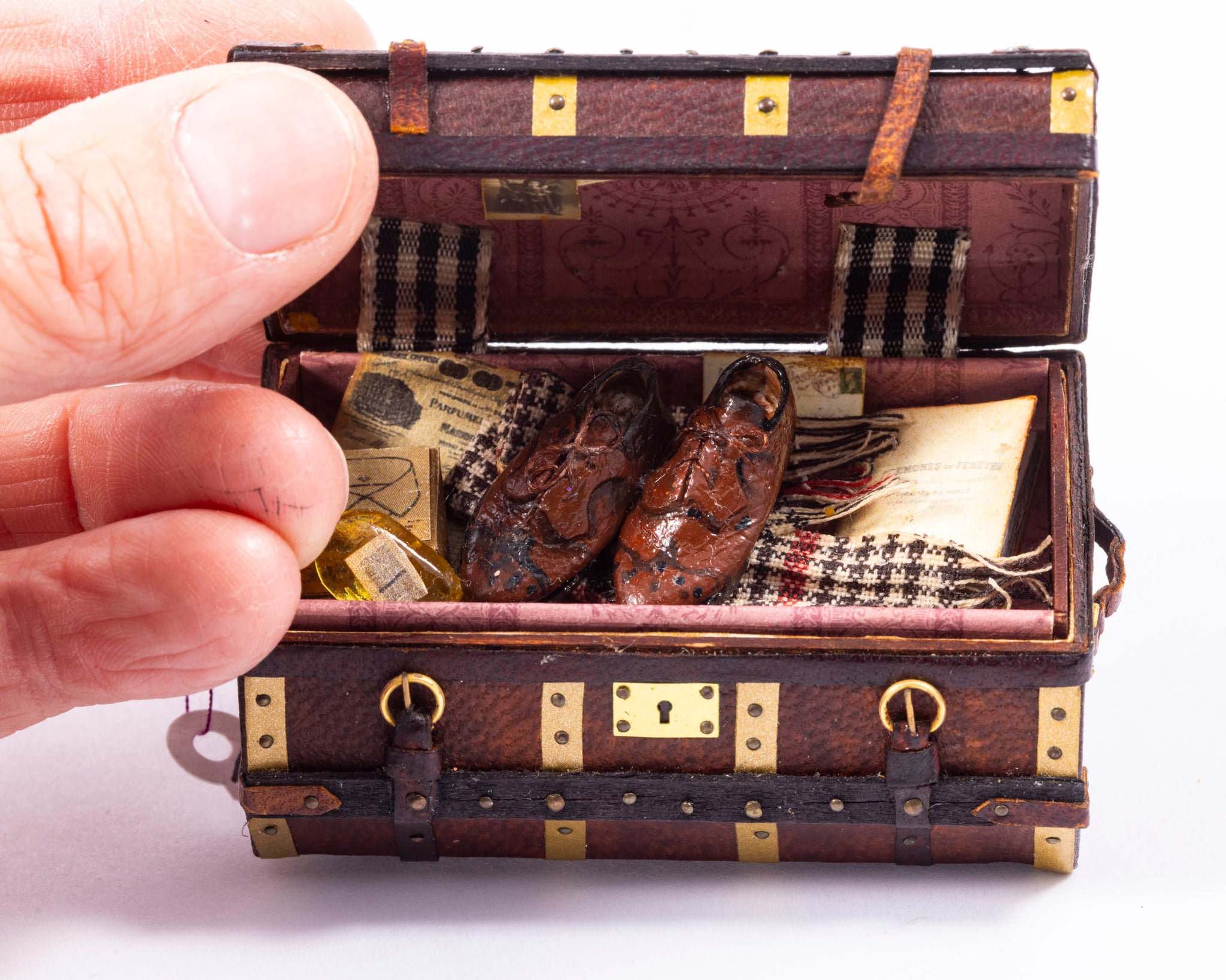 Men's Decorated Trunk with Leather Shoes. Shoes are by The Doll's Cobbler. There's other men's items as well as a shirt.