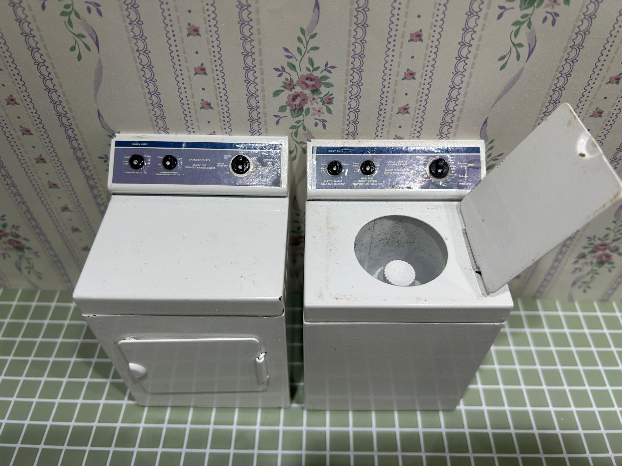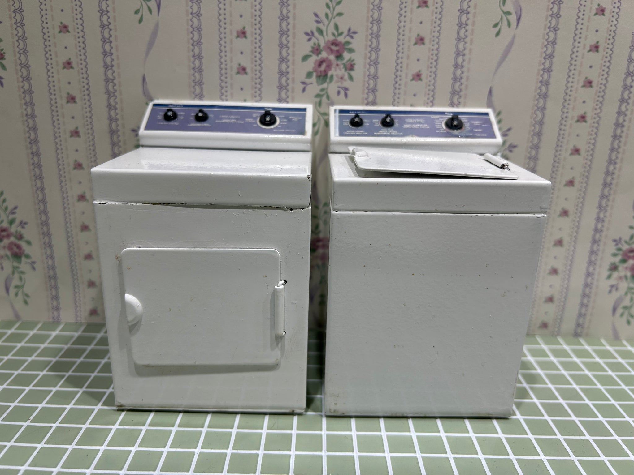 Metal washer and dryer set. No longer being made, on sale because it is chipped. Was mafe by Falcon. 1:12 scale.