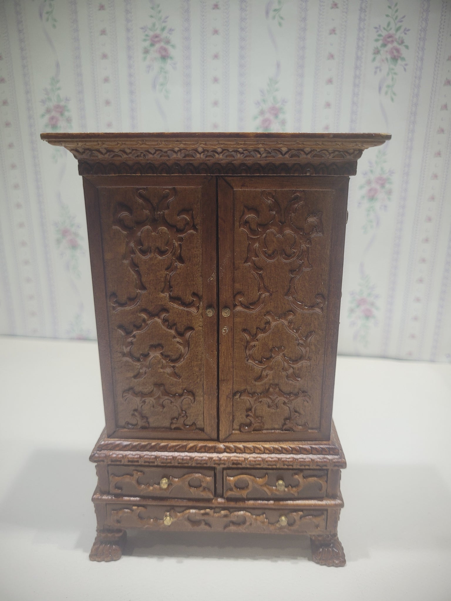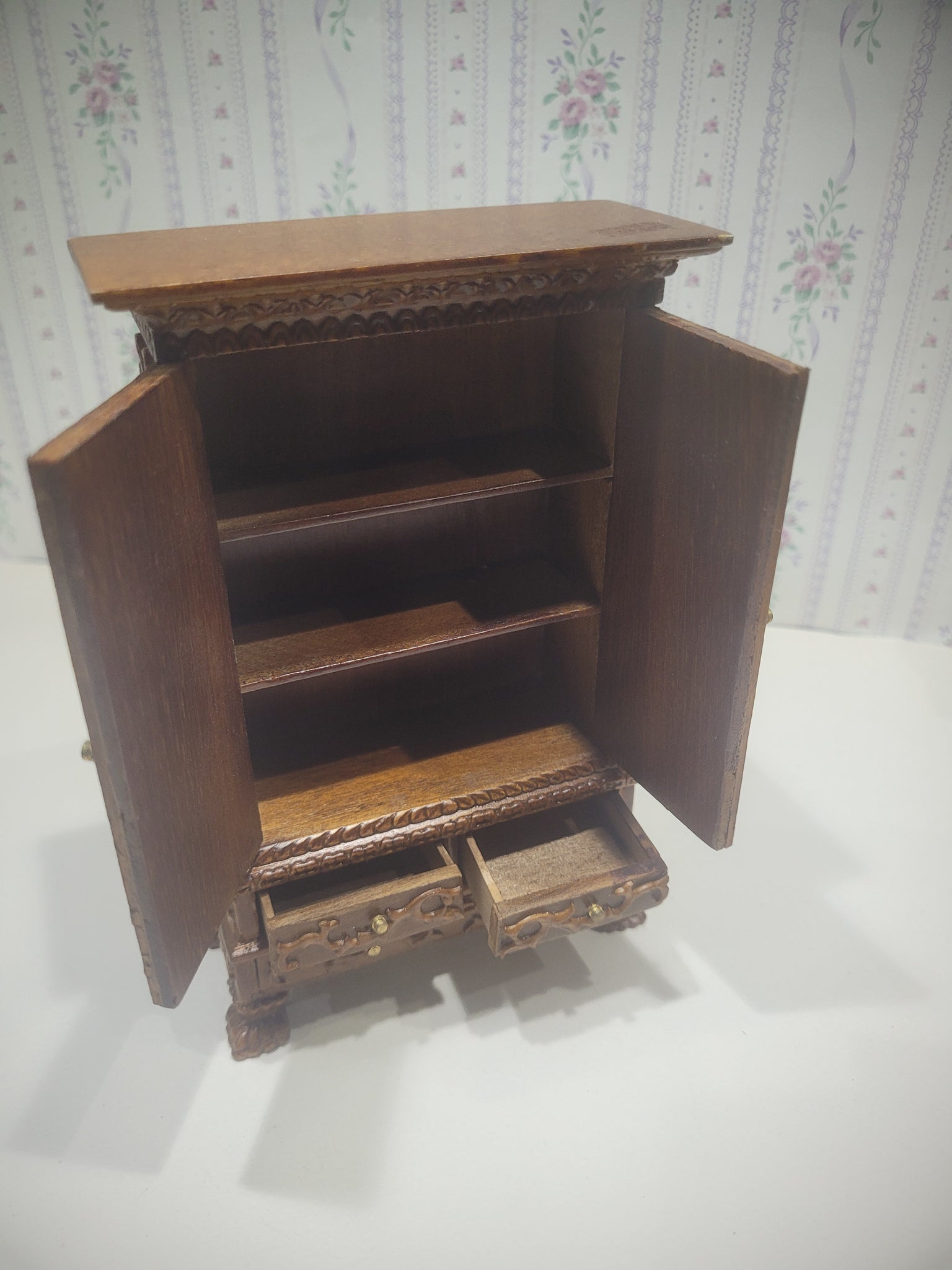 Ornate Carved Wooden Hutch with Functional Cabinet and Doors