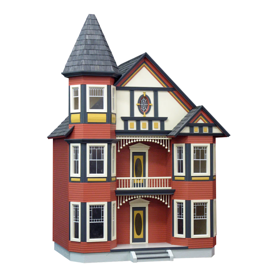Painted Lady Dollhouse Kit (Real Good Toys) has 7 rooms, and measures approximately: 30"W x 22"D x 42 3/4"H