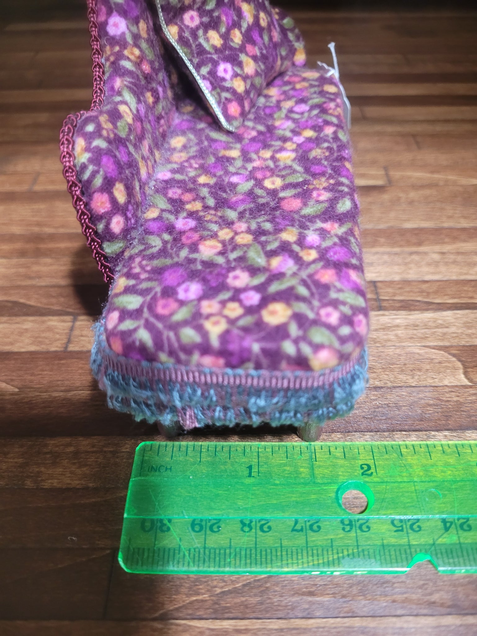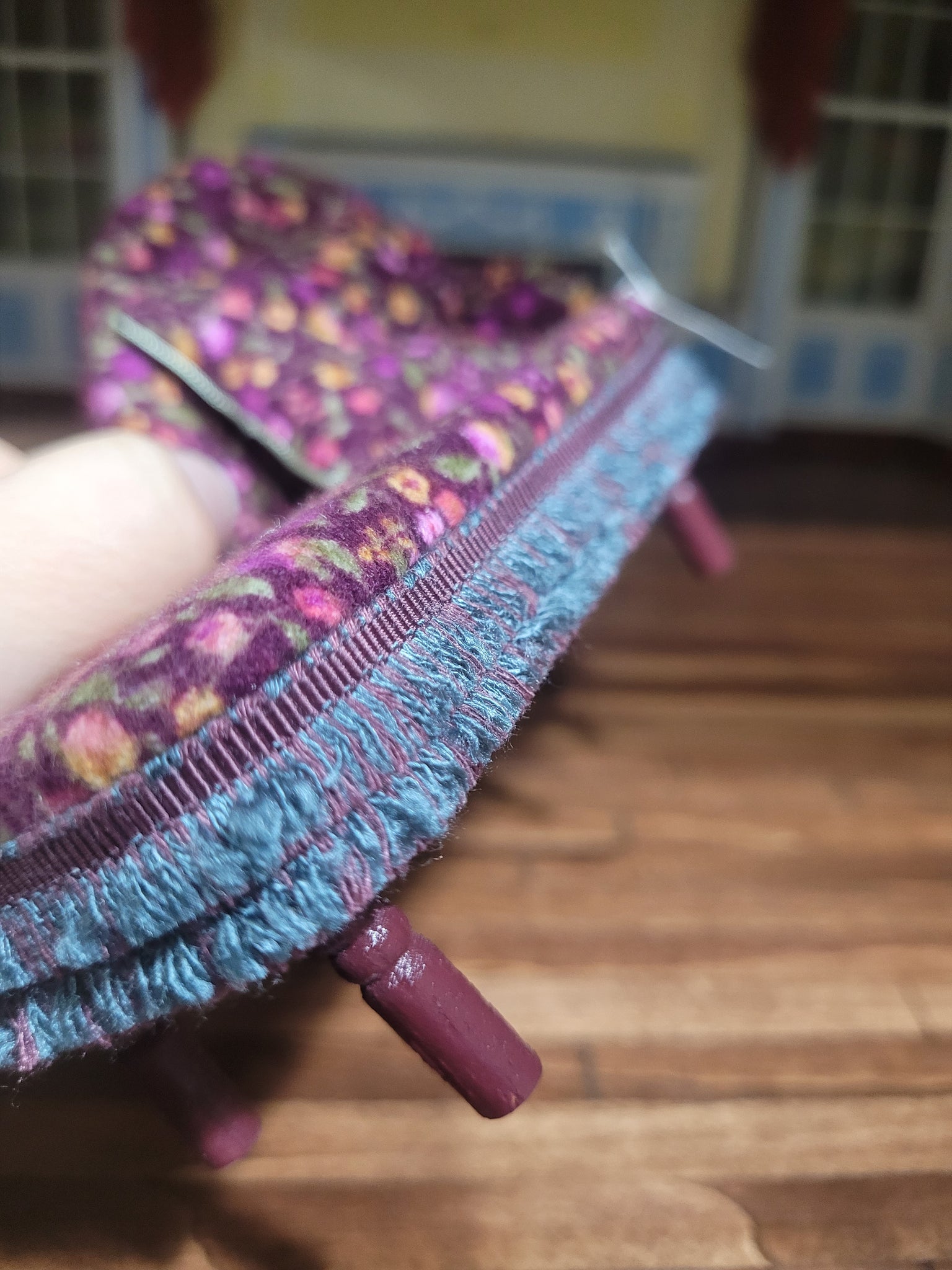 This is a Purple Floral Pattern with Shag Trim Chaise Lounge.