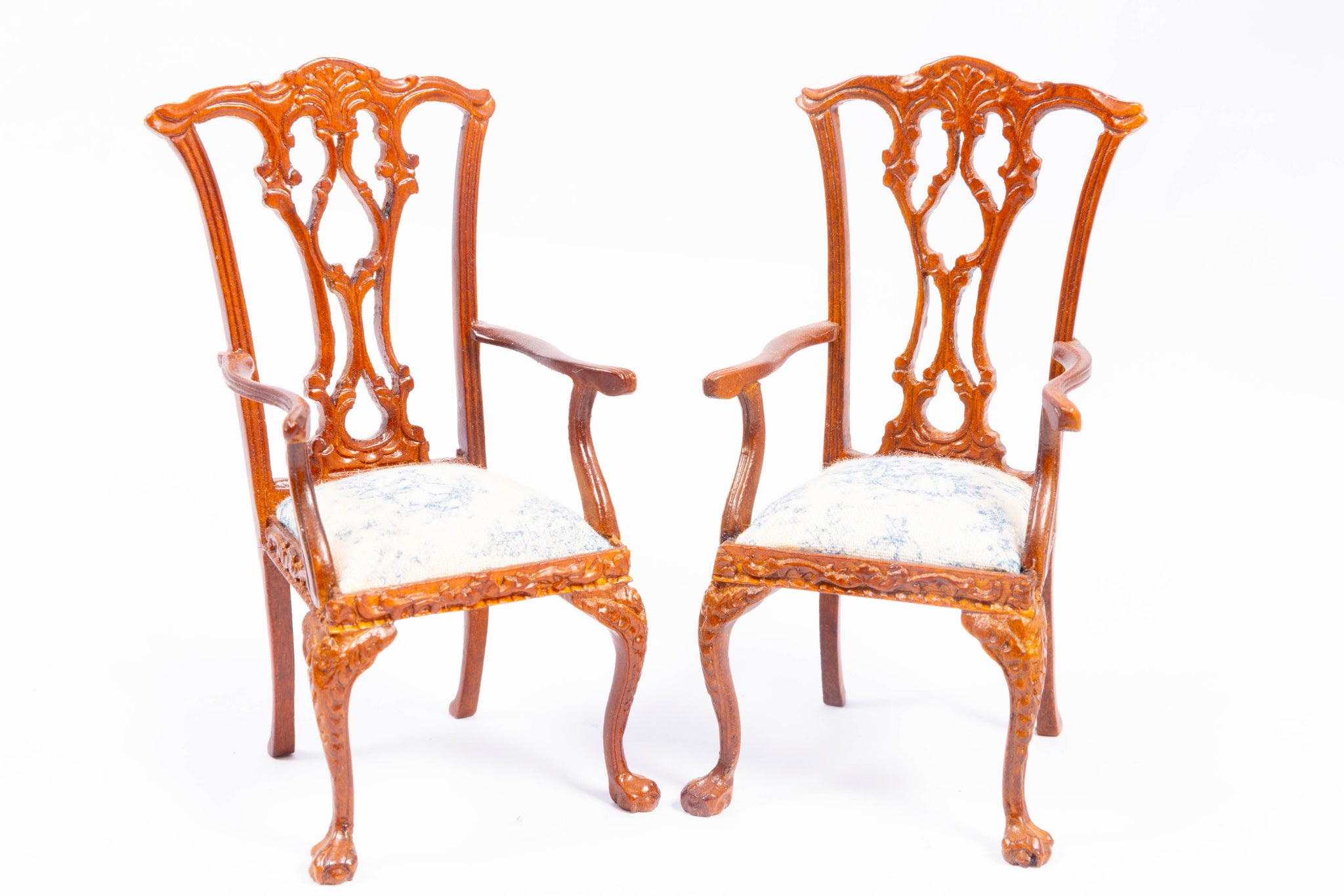Great for a sitting room. Bespaq Pair of Armchairs & Table. Blue Toile fabric.